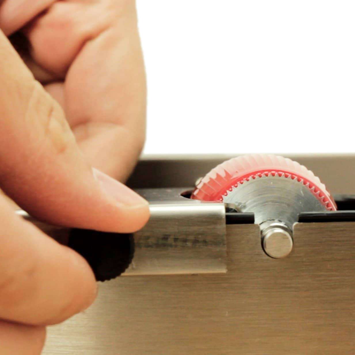 Get an edge up on your production time with the Craftplus Edge Dyeing Machine! Semi-automatic with adjustable speed and a 49 mm barrel makes for quick and accurate edging application. Featuring a removable paint tray for easy cleaning, with an adjustable tray cover to effectively reduce splatter of paint, while controlling output. The compact design takes up minimal space in your shop, allowing you to be even more efficient in your work! Compatible with major edge paint brands, like our Fenice Line of Edge Colors (Diamond Edge Color #FDEC), and suitable to paint the edges of handbags, wallets, watch straps, belts and other leather accessories.