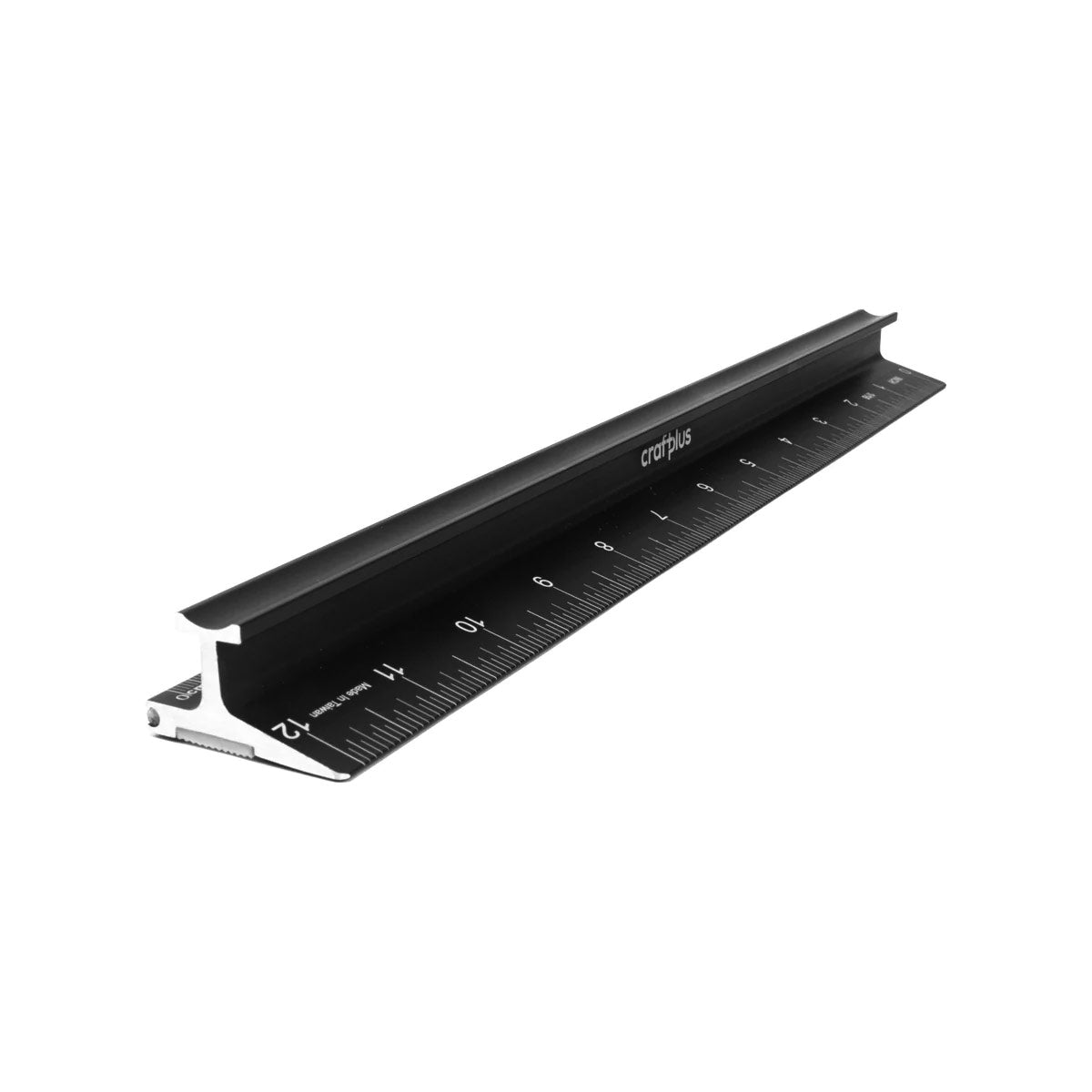 Made from quality aluminum alloy with black anodized finish and laser engraved scale. This professional safety cutting ruler has both centimeter and inch measurements suited for all crafters and projects. The unique I-beam profile with flange handle allows you to quickly position the ruler on any work piece. It is weighted with a non-slip bottom to keep it from moving and provides extra stability when cutting. Available in two length sizes: 12” (30 cm) and 36” (90 cm). CSCR