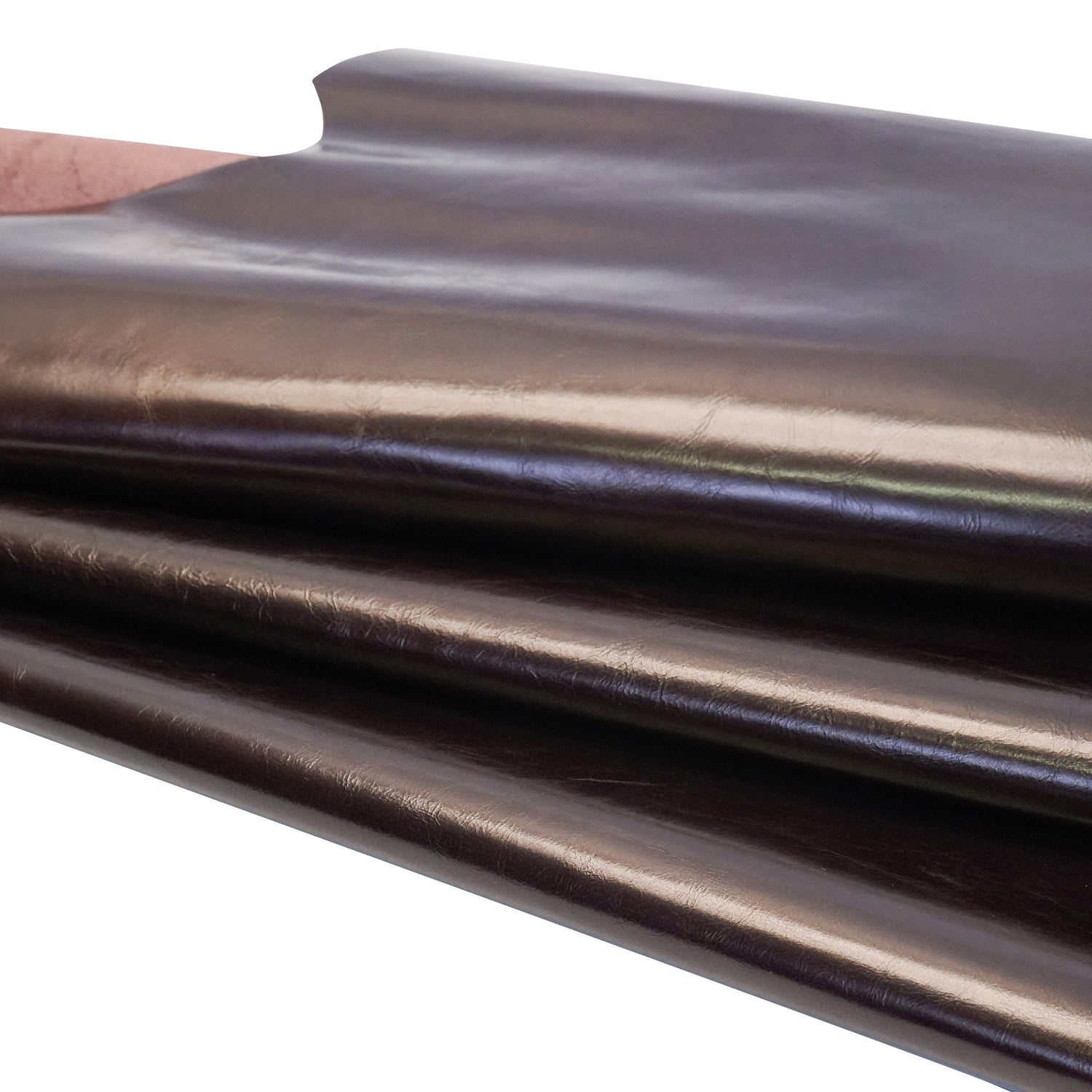 Distressed Chocolate Calf Sides with a slight metallic bronze sheen when it’s in the light. A nice stand up for bags, but also quite nice for belt liner, clutches and wallets. While supply lasts!!!
