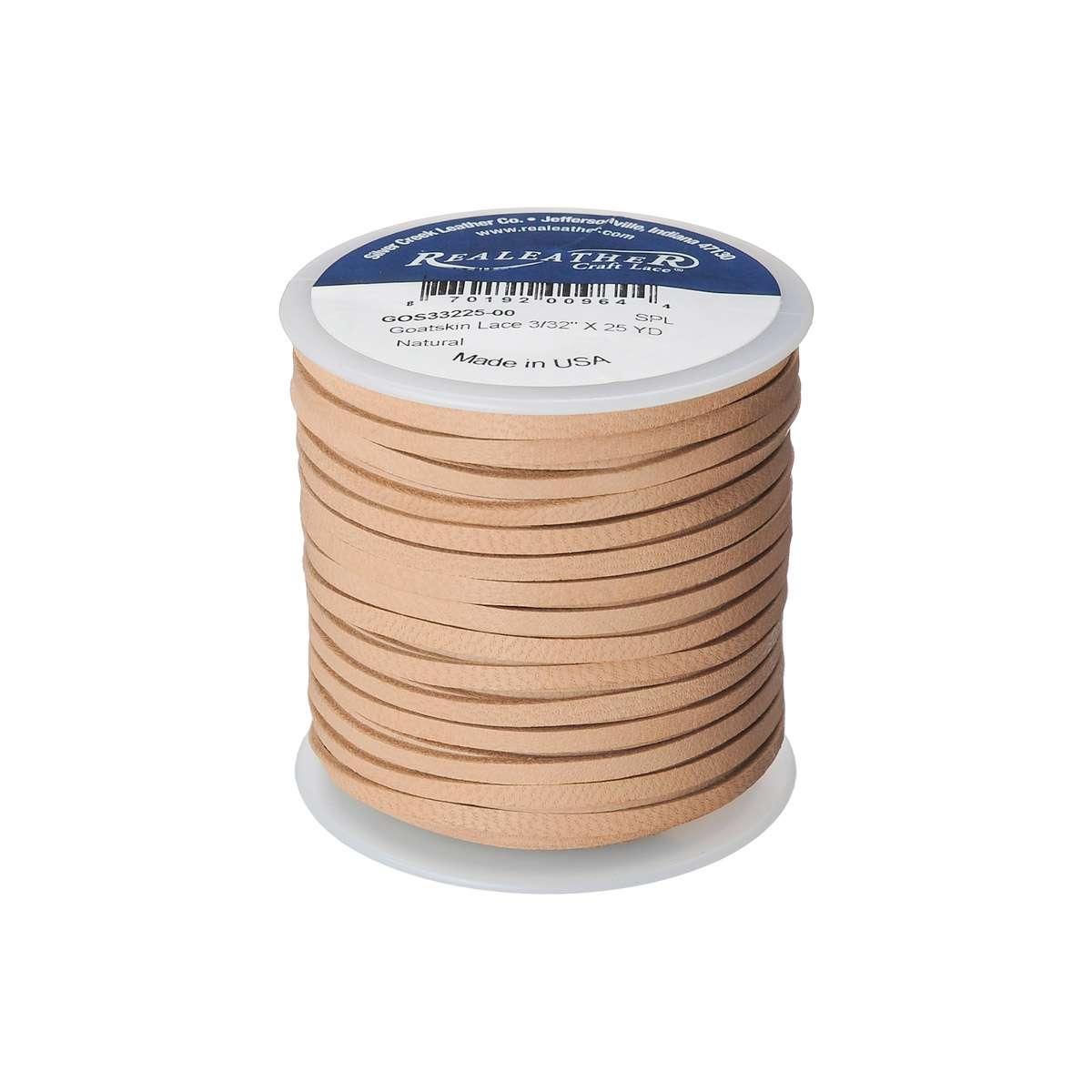 Supreme Goat Leather Lace, Natural. 5/32" width, 25 yds length. 2-3 oz.