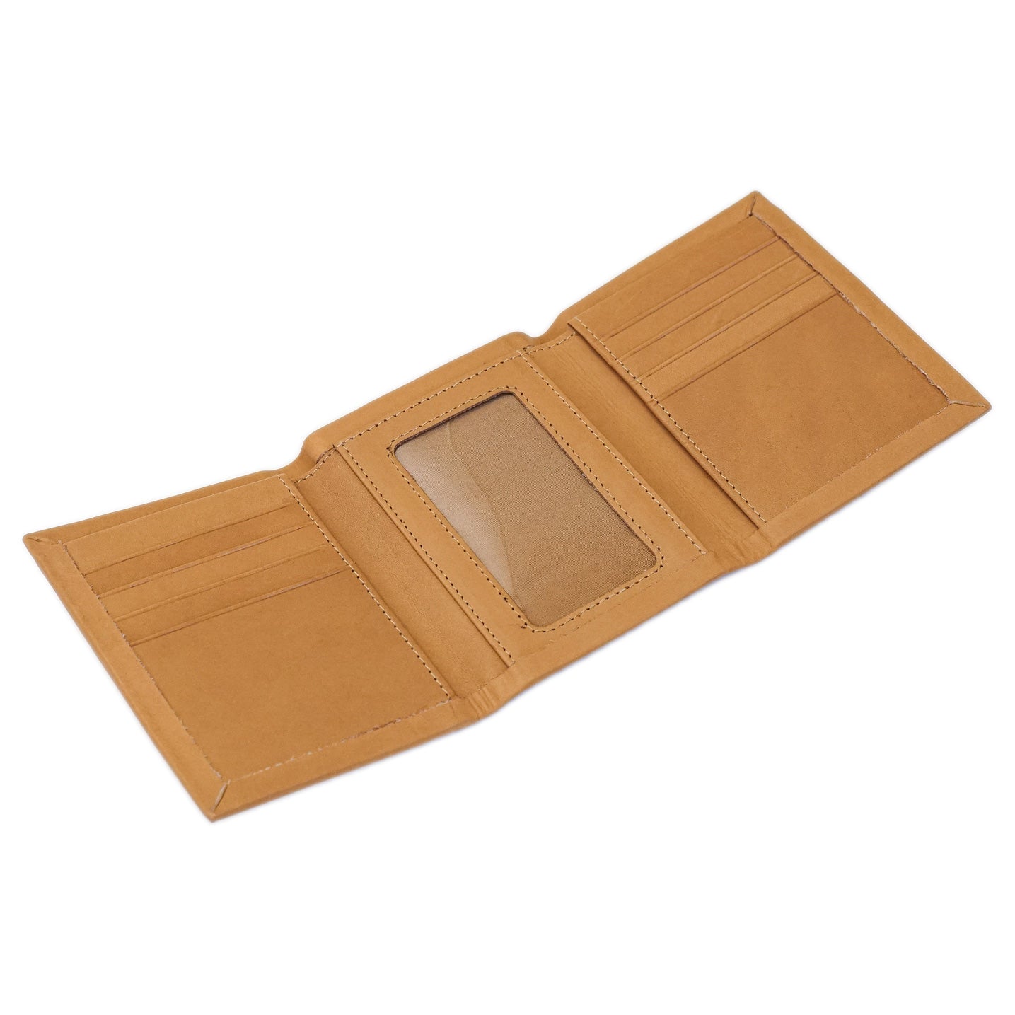Chaylor-Fenneli calfskin mens centerfold trifold wallet interior. Has window for ID, plenty of card flaps and a large currency divider. Measures open 9.8"x4.2". Item #195-553206.