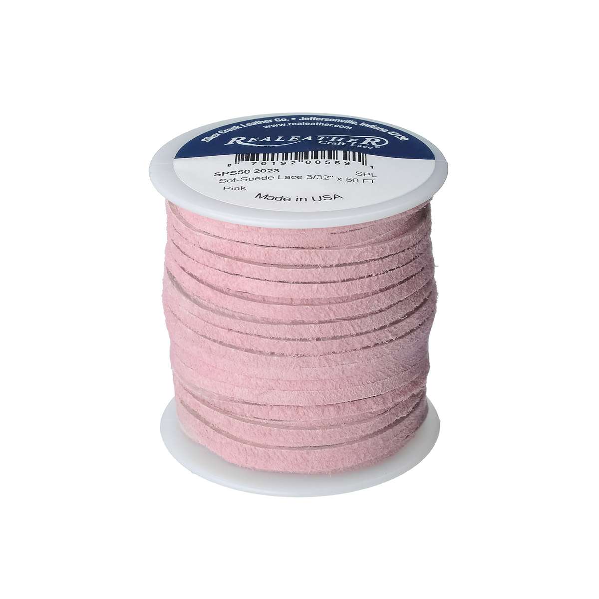 Cut from very heavy pigskin suede, it's super strong, great for jewelry use such as chokers, necklaces, Native American things & such. Great color selection, and comes in a width that is very difficult to find! 3/32" x 50 ft. Made in U.S.A.