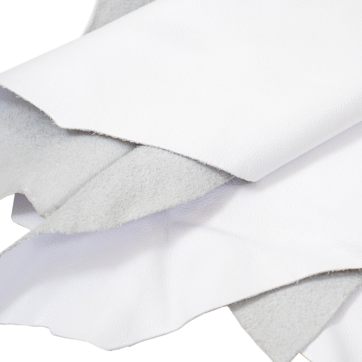 Midweight Biker/Chap Side - White. 3-1/2oz (1.39mm). Sides average 22-25 sq ft. Sold by the sq ft. We will cut.