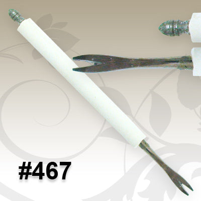 This modeler is actually designed for beveling the edges of light leather to prevent fraying. Featuring a split bevel tool on one end and a ball burnisher on the other.