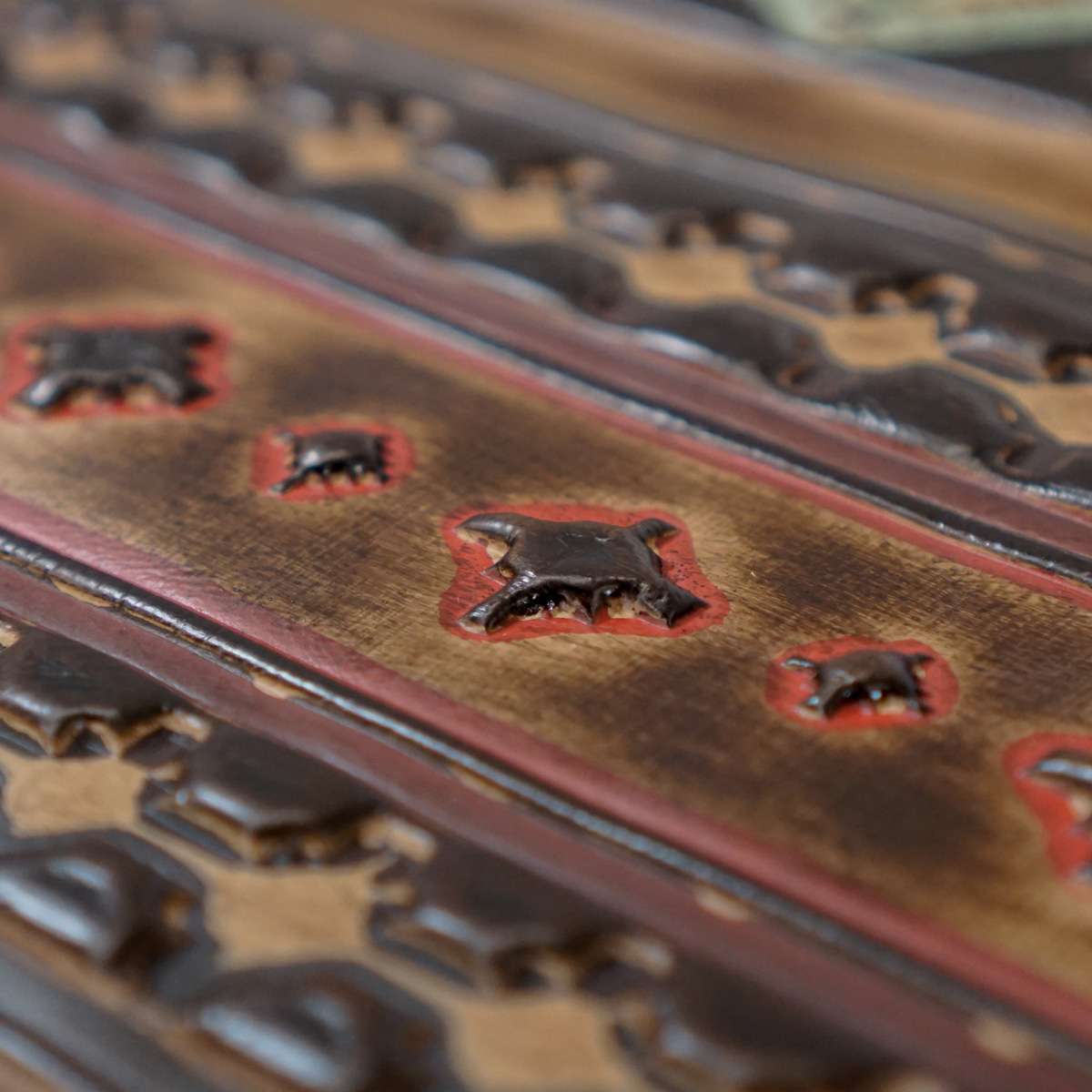 Bring native style to your next project with our North American Indian inspired embossed leather. This leather features unique geometric patterns and is dyed in a variety of weathered colors! We think these leathers will bring a unique flare to your next bag, journal cover or other lightweight projects! Great for making bags, totes, clutches, wallets, earrings, wristbands, cuffs, and other personal leather goods! This would also make for great upholstery applications, such as, seat covers, ottoman covers, table and cabinet inlays, and so on!