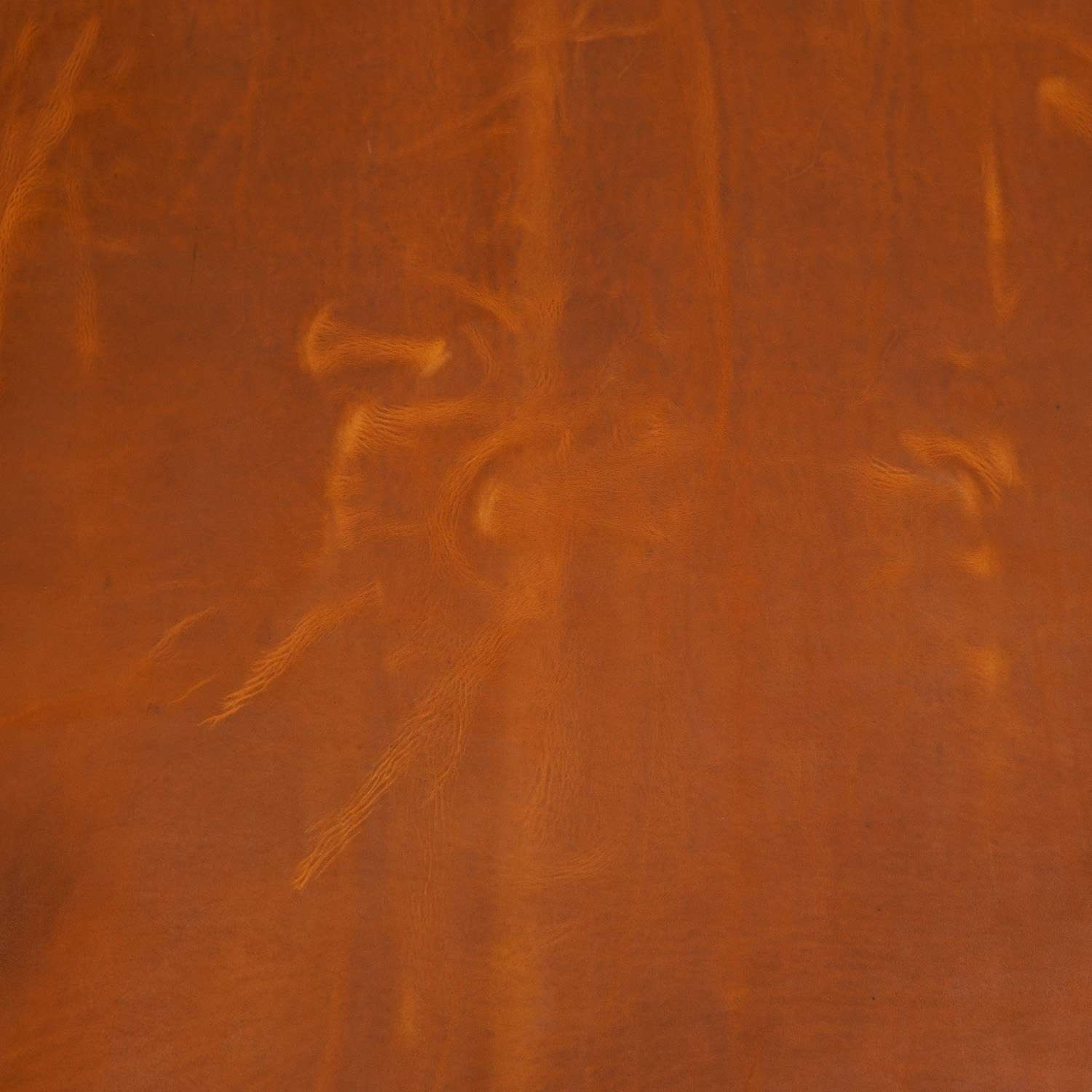 Ranch Hand leather is a warm, copper brown with a slight pull-up. The leather has a slightly distressed grain, moderately soft hand, and some stretch. With a color reminiscent of antique saddles and a soft touch, this leather is highly desirable for a vintage look and luxurious finished product.