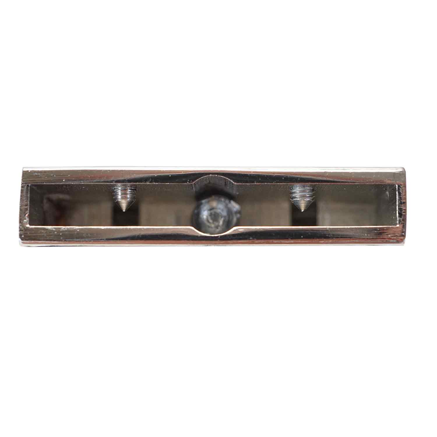 Reversible Buckle Nickel Plated, 40 mm. 3 3/8"long, 2 1/8" outside width, 1 1/2" inside width. Attach with 2 Set Screws, included.