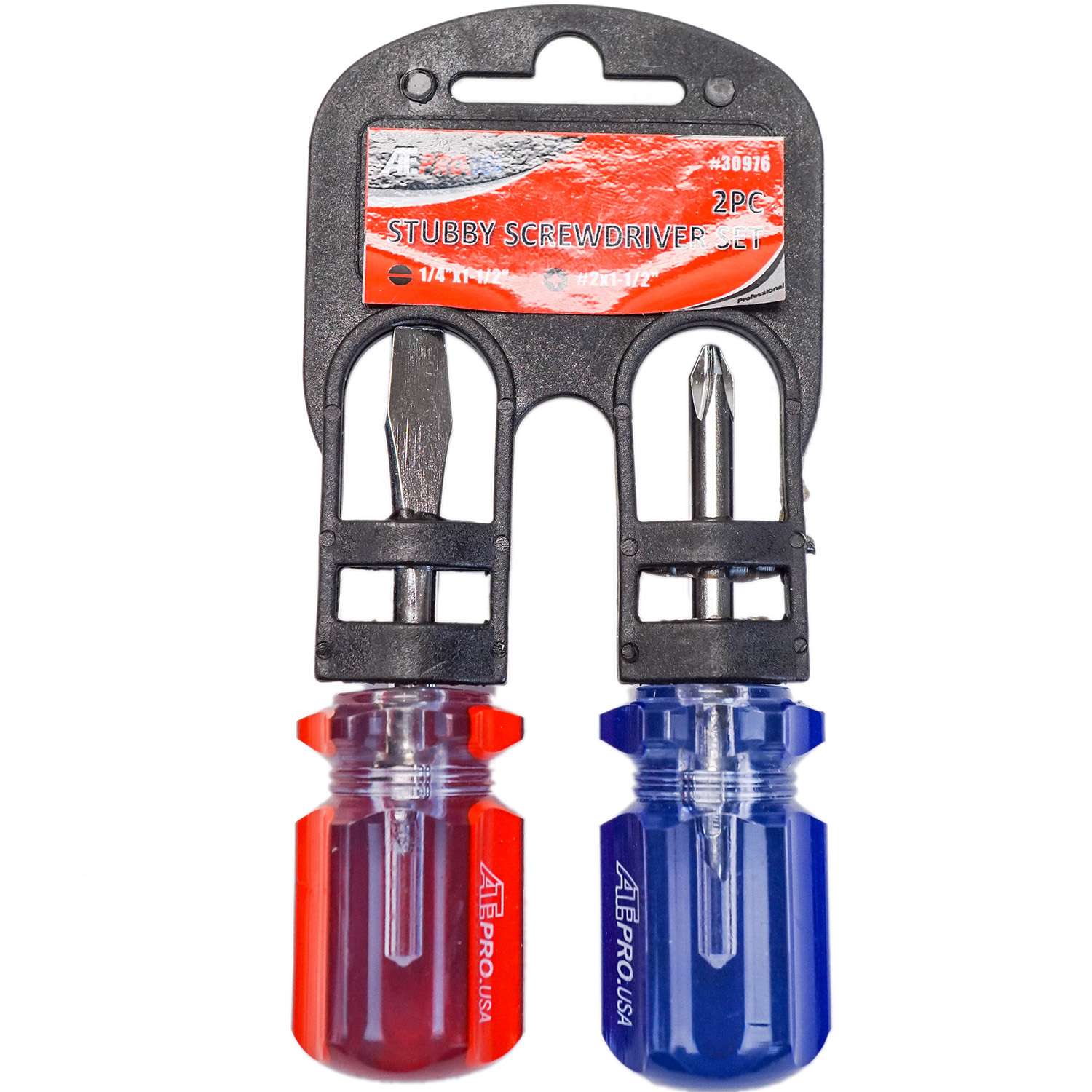 Stubby screwdriver set, with a phillip and flat head. Overall length is 3 5/16".