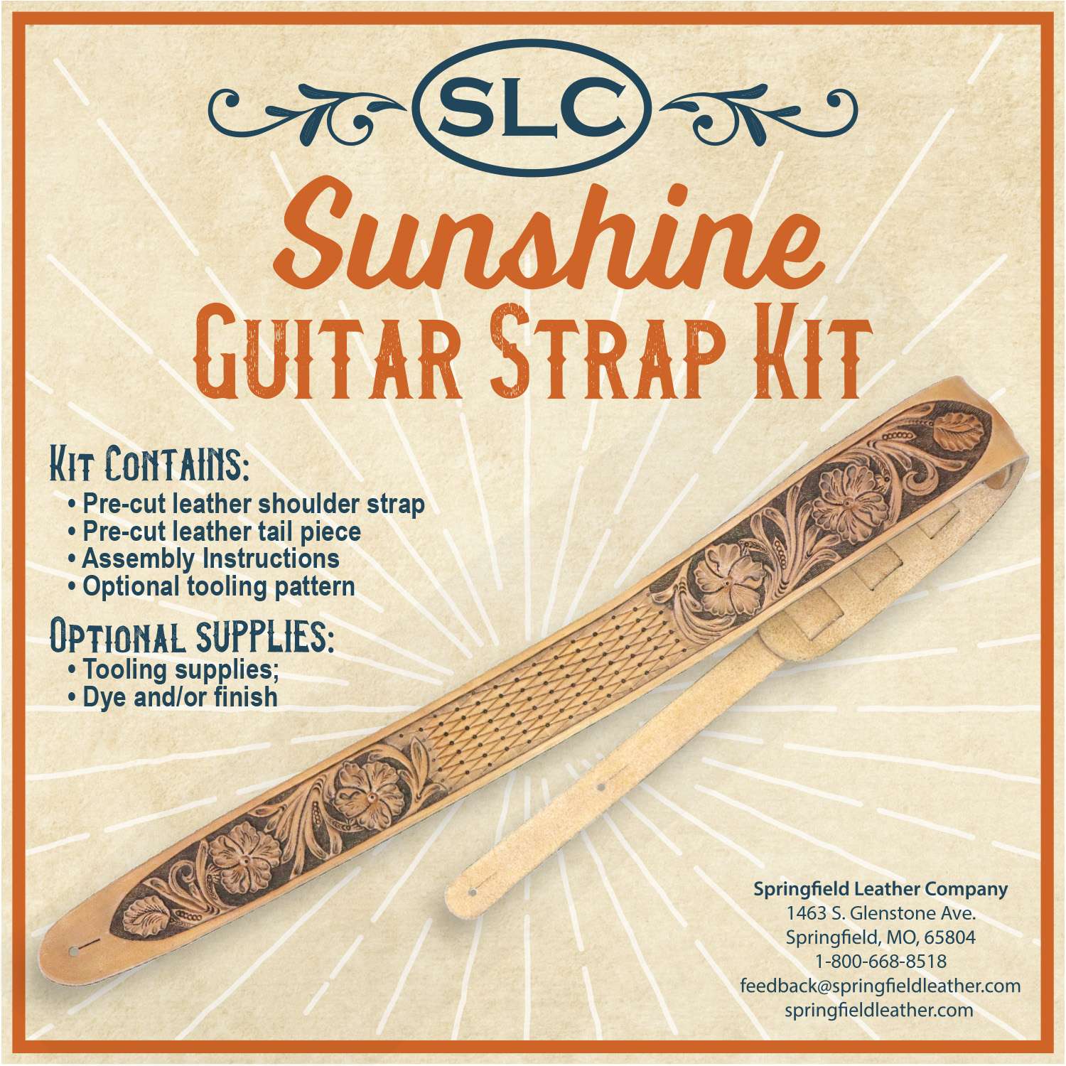 This very happy little guitar strap is named after the last band that our fearless leader (Kevin) played in back in the early 70's... For lack of inspiration and lack of a decent pair of sunglasses, he decided to call themselves.... you got it .... "Sunshine"! Their playing engagements include many prestigious locations scattered throughout northeast Iowa farm towns, such as the "Dew Drop Inn, and the " Nineteenth Hole".... 2-1/2" wide and adjustable from 46" up to 54" in length or 40" to 51" hole to hole. Kit includes pre-cut leather, assembly instructions, and tooling pattern. Item #144-4442500