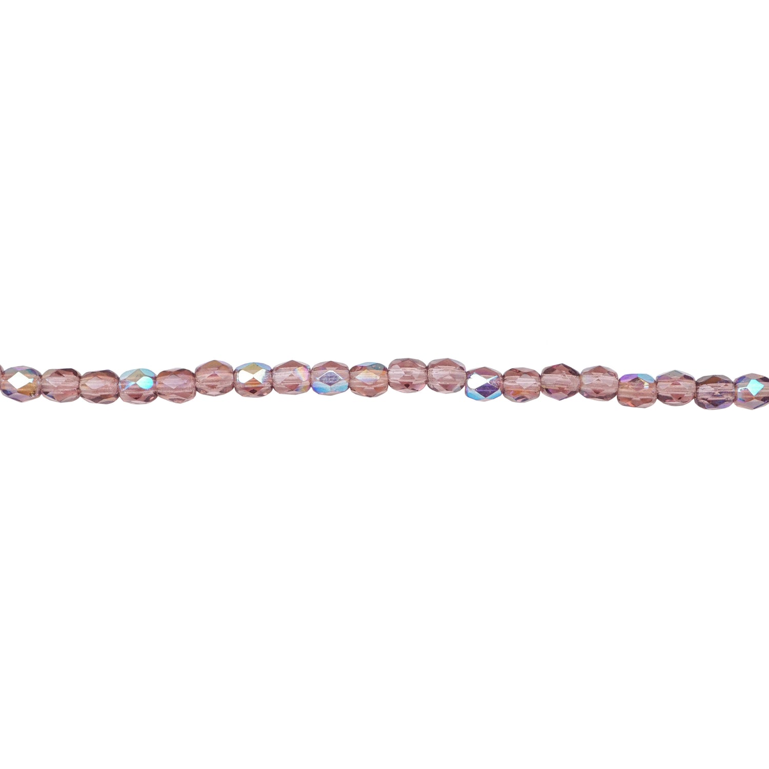 Color: Amethyst AB Size: 3mm Quantity: 50 Pieces Fire-polished beads are full of vivid color. These mold pressed, faceted glass beads are fire-polished to produce the softer edges that allow the color to glow from within. Smaller 6mm beads are ideal as spacers in strands and larger sizes make a beading statement. Item Number: 339-21