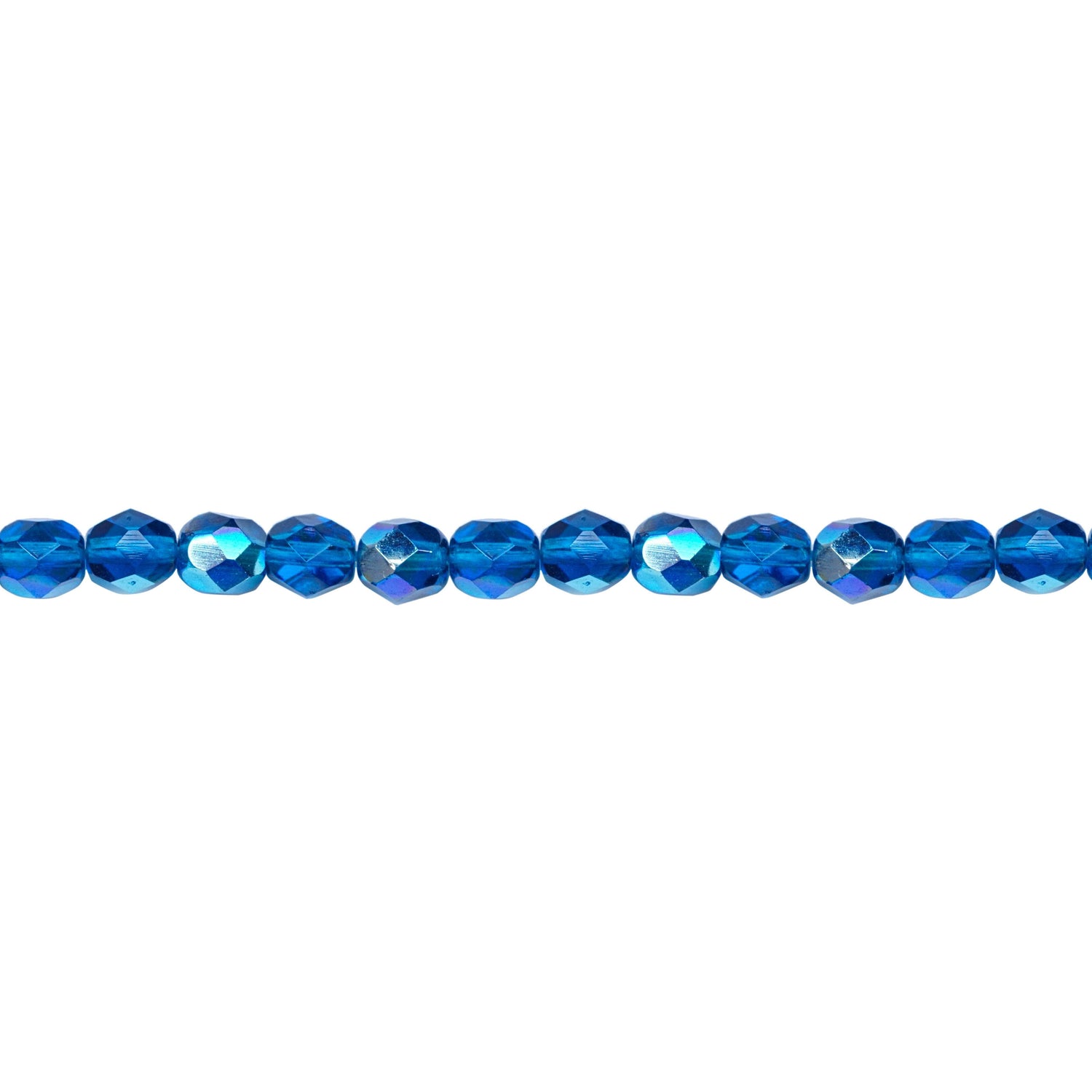 6mm Capri Blue AB Bead Strand - Firepolished is backordered and will ship as soon as it is back in stock.