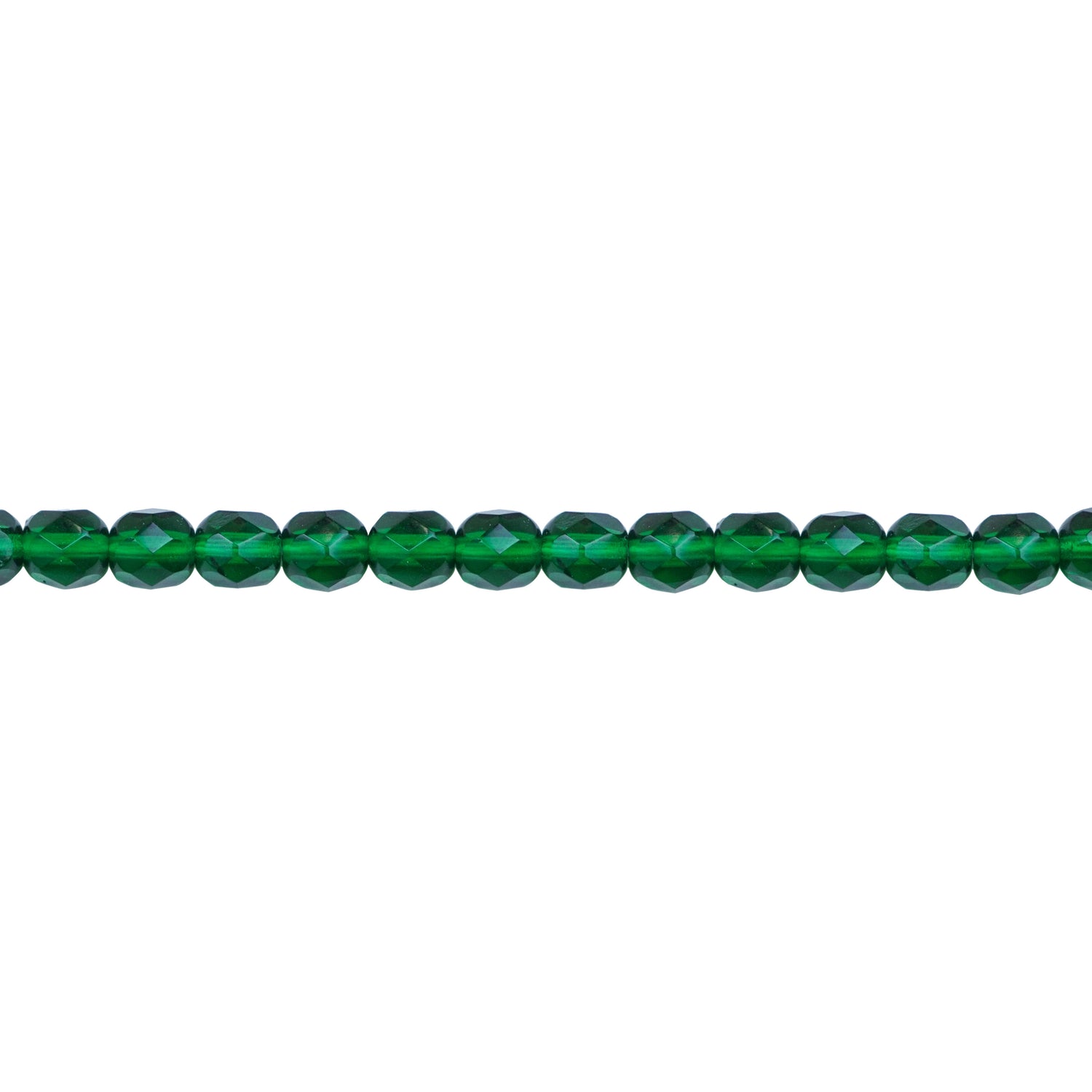 Color: Green Emerald Size: 6mm Quantity: 25 Pieces Fire-polished beads are full of vivid color. These mold pressed, faceted glass beads are fire-polished to produce the softer edges that allow the color to glow from within. Smaller 6mm beads are ideal as spacers in strands and larger sizes make a beading statement. Item Number: 339-73