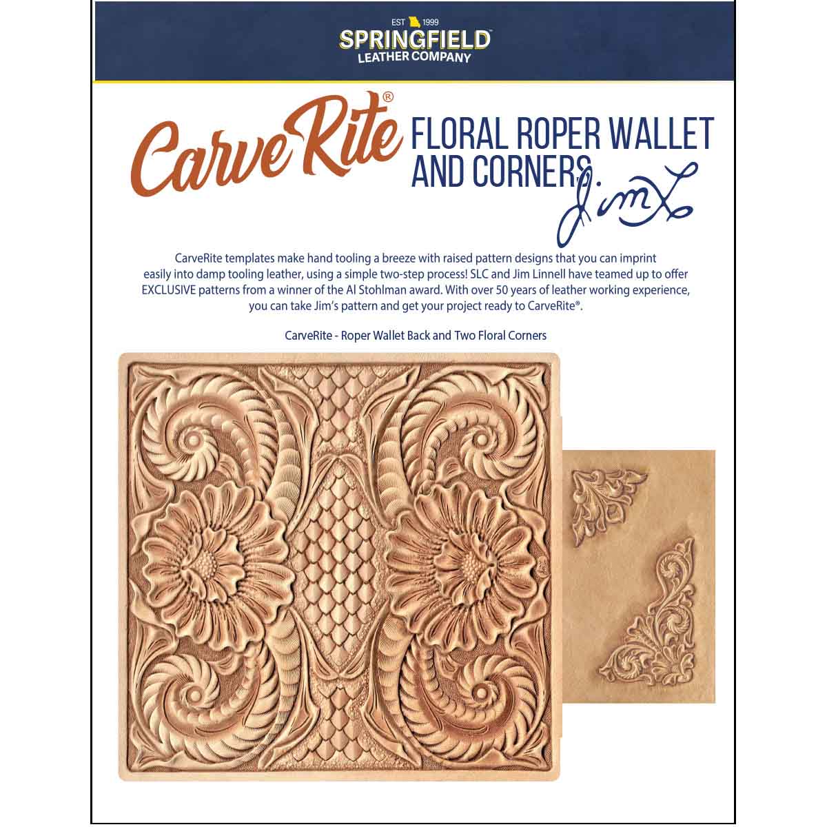 Choose from a selection of six different patterns from the Al Stohlman award-winning artist Jim Linnell who has spent the last 50 years working with leather, perfecting his craft, and teaching others the fulfilling (even profitable) art of leather carving!