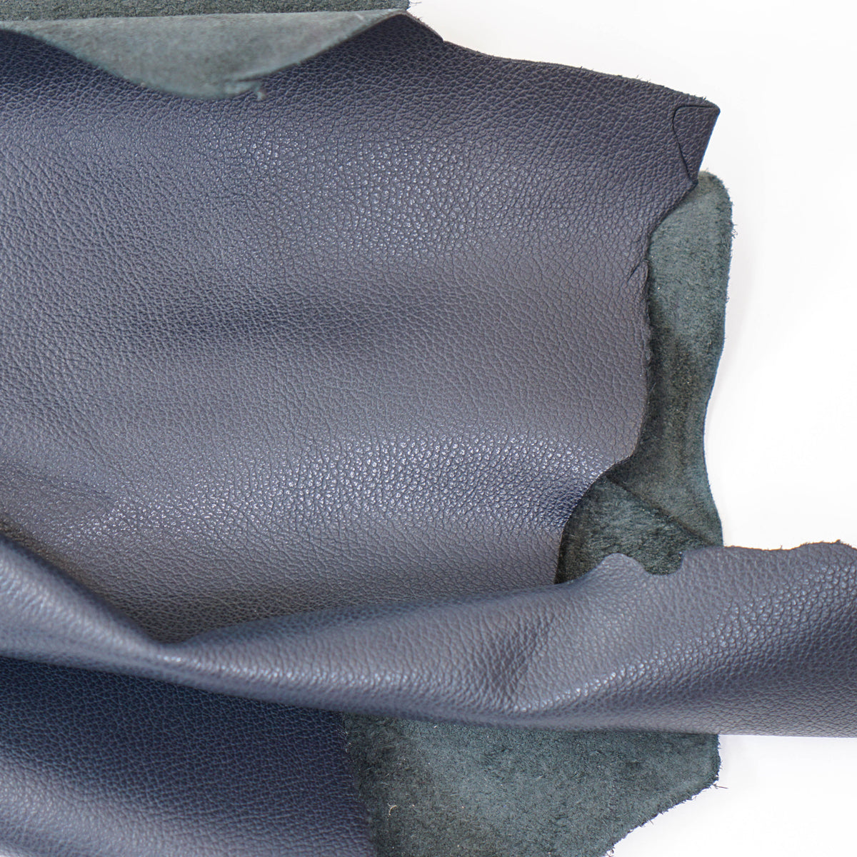 Midweight Biker/Chap Side - Navy. 3-1/2oz (1.39mm). Sides average 22-25 sq ft. Sold by the sq ft. We will cut.
