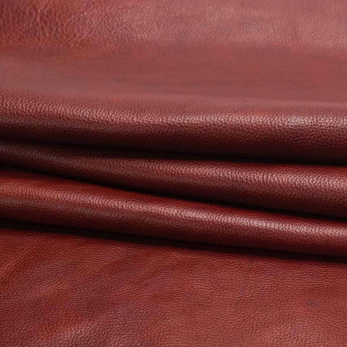 Sold By: Per Square FootThese are large, robust sides that have been milled for a softer hand and pebbled grain and the result is fabulous! This is very high-end leather that can be used for making shoes, boots, heavy vests, and jackets. Featuring a rich cherry wood color with a slight pull-up that contrasts beautifully with the color, resulting in amazing highlights. If you’re looking to make expensive satchels, bags, and other weighty goods, this is the leather for you!