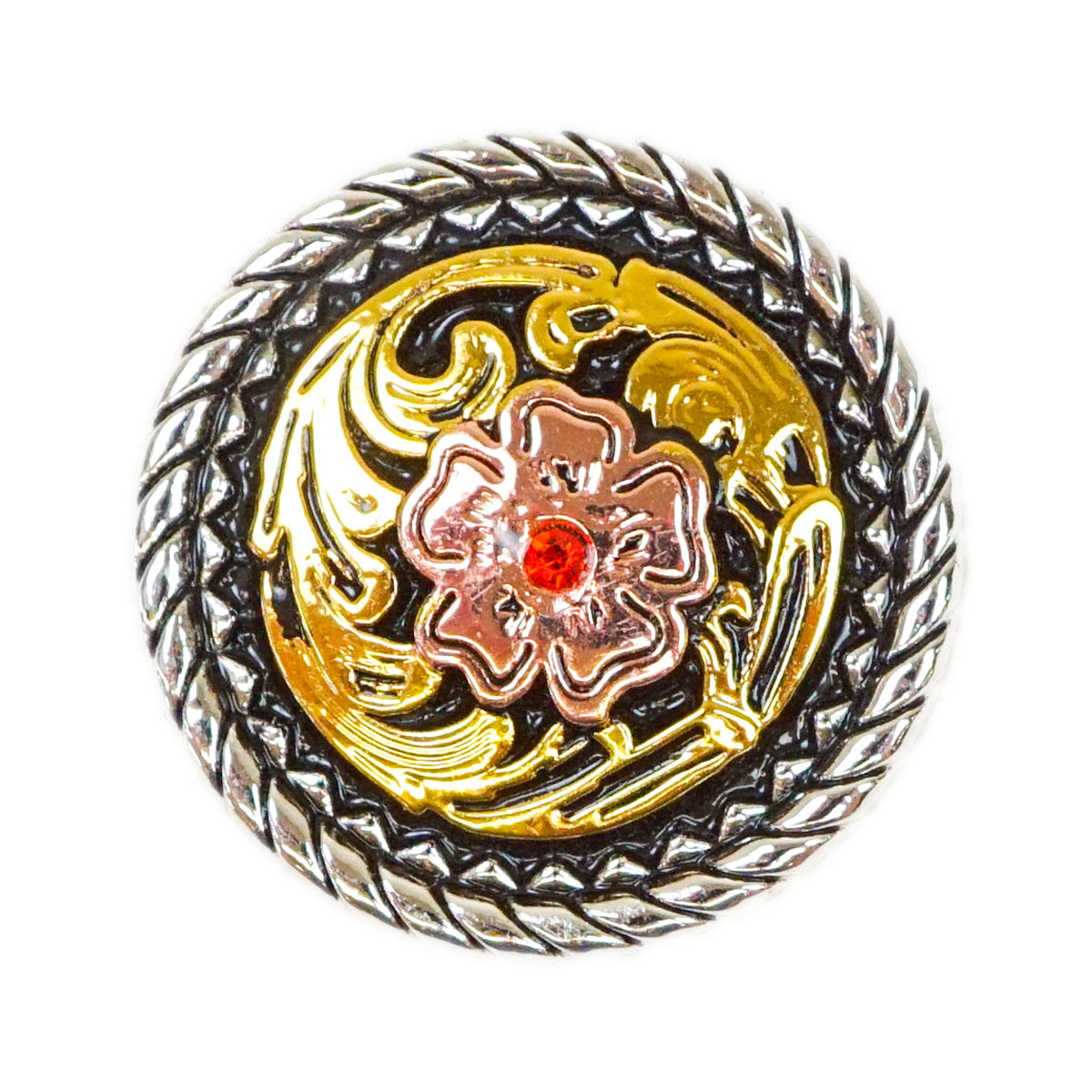 Nickel with gold accents. Diameter: 1" (2.5cm). Short Screw.