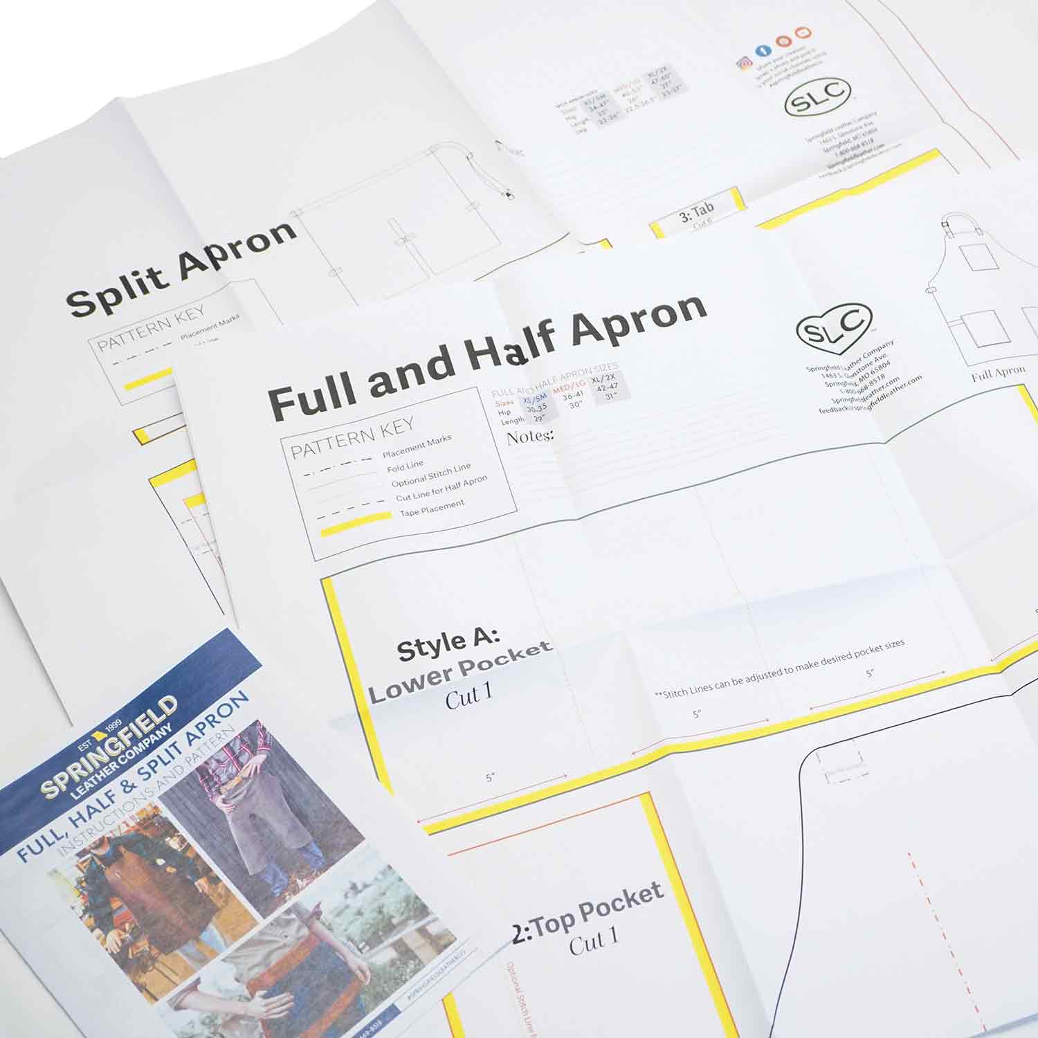 SLC Pattern, Leather Apron Pattern 3 Pack. Includes patterns for: Full Apron, Half Apron, and Split Apron. This pack provides full size patterns and instructions.
