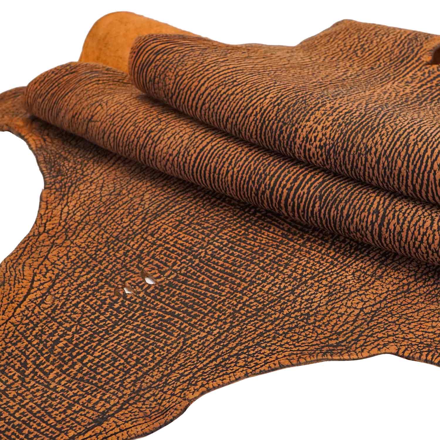 The hand on these gorgeous sharkskins has a very slight firmness, but really good body, making it the ideal exotic to craft with. Some MIGHT have a small hole or two, possibly a small scar or two that are easily worked around. Incredibly nice leather, especially for this price!