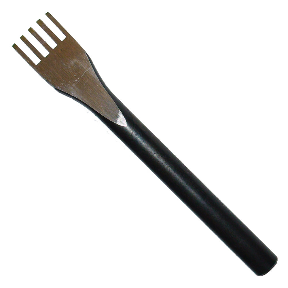 Brother, do we sell a lot of these things! You get 5 prongs, measuring a 1/16 of an inch each, and one handle, all forged in one piece. And the result is one fine stitching chisel that will last you a glorious long time. A little more moolah than the other ones, but hey? its well worth the money.