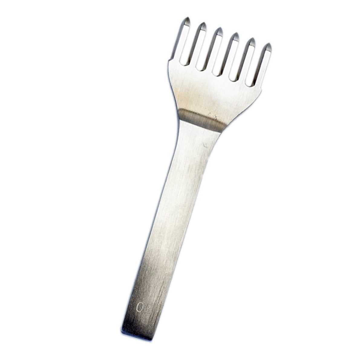 Premium stitching chisels, each crafted from a solid piece of high-strength steel, and polished to a fine, brushed shine and ultra-smooth feel. Each tool is engraved with the size, for quick reference. Though incredibly strong, these high-caliber tools are lightweight and effortless to work with. The prongs are extremely sharp and have been precision tooled for making the perfect rhombus to give your stitches a sleek, professional look, even with heavy-weight leathers!