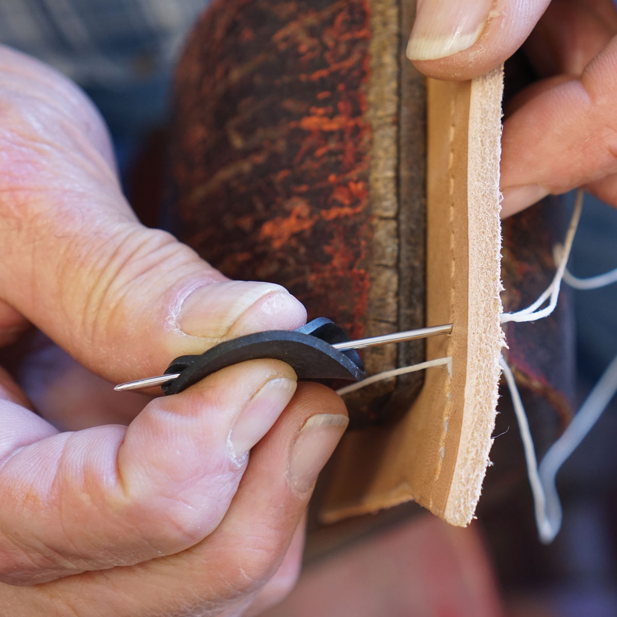 Sometimes when you’re hand sewing, you’ve gotta get a grip! That needle is a lot easier to pull through with these rubber discs—just ask Rusty, who used them to make a holster this week! Simply stick a needle through your leather, fold the rubber disc over the needle, grip and pull the needle through, and voila! The needle comes through, smooth like butter.