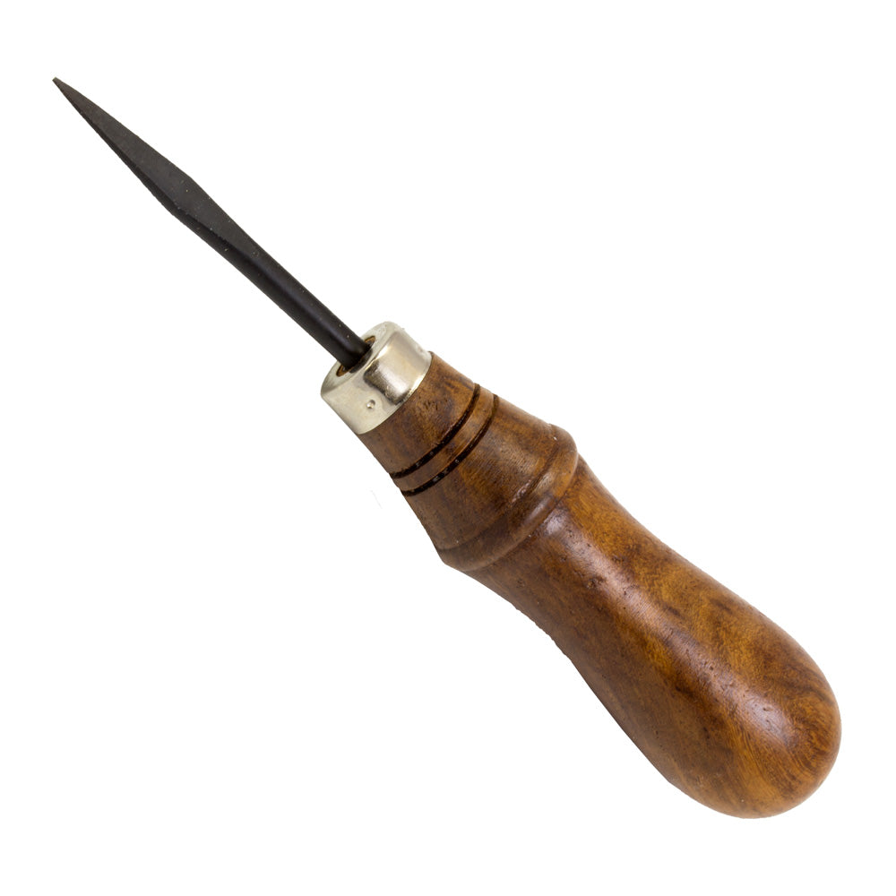 The Craftmaster Lacing and Stitching Fid is an essential tool that all leather workers should have. It is used to stretch and enlarge holes in the leather for thick lace or thread. It can be sharpened if needed. Overall length 6-1/2", blade length 2-3/8", blade width 3/16" at widest point. Handle is made of finished hardwood, blade is made of steel. Item #011-305600