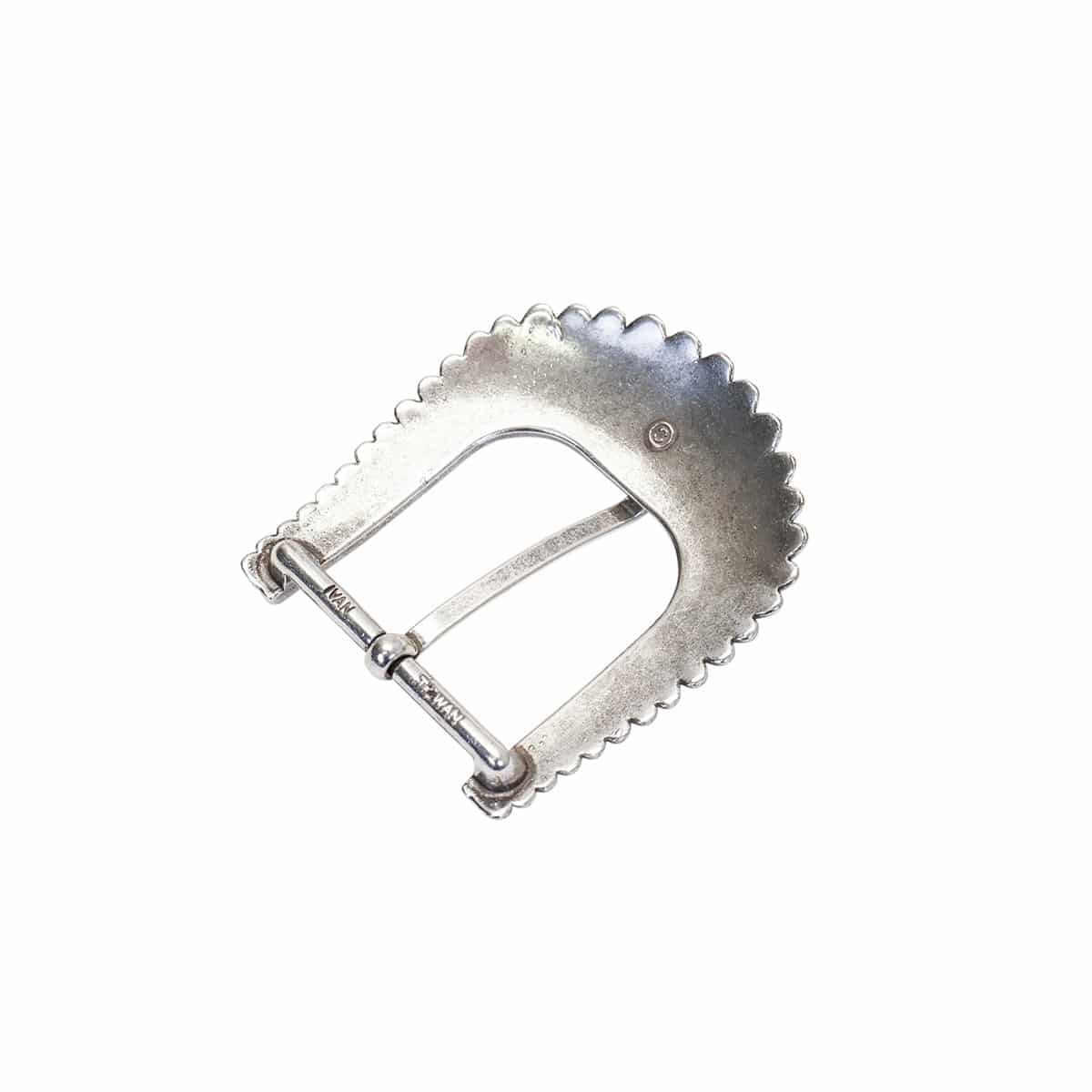 These well-crafted heel bar buckles feature an intricate feather design, with black enamel tips that really showcase the detail of the feathers and a round, domed, turquoise cabochon set right in the middle of the buckle for an attractive finishing touch! The low heel bar design allows your strap to lay flush with the buckle face, for a smooth, finished look! Two sizes available! 1-1/2” will accommodate straps up to 1-1/2” in width and 1” will accommodate straps up to 1” in width.