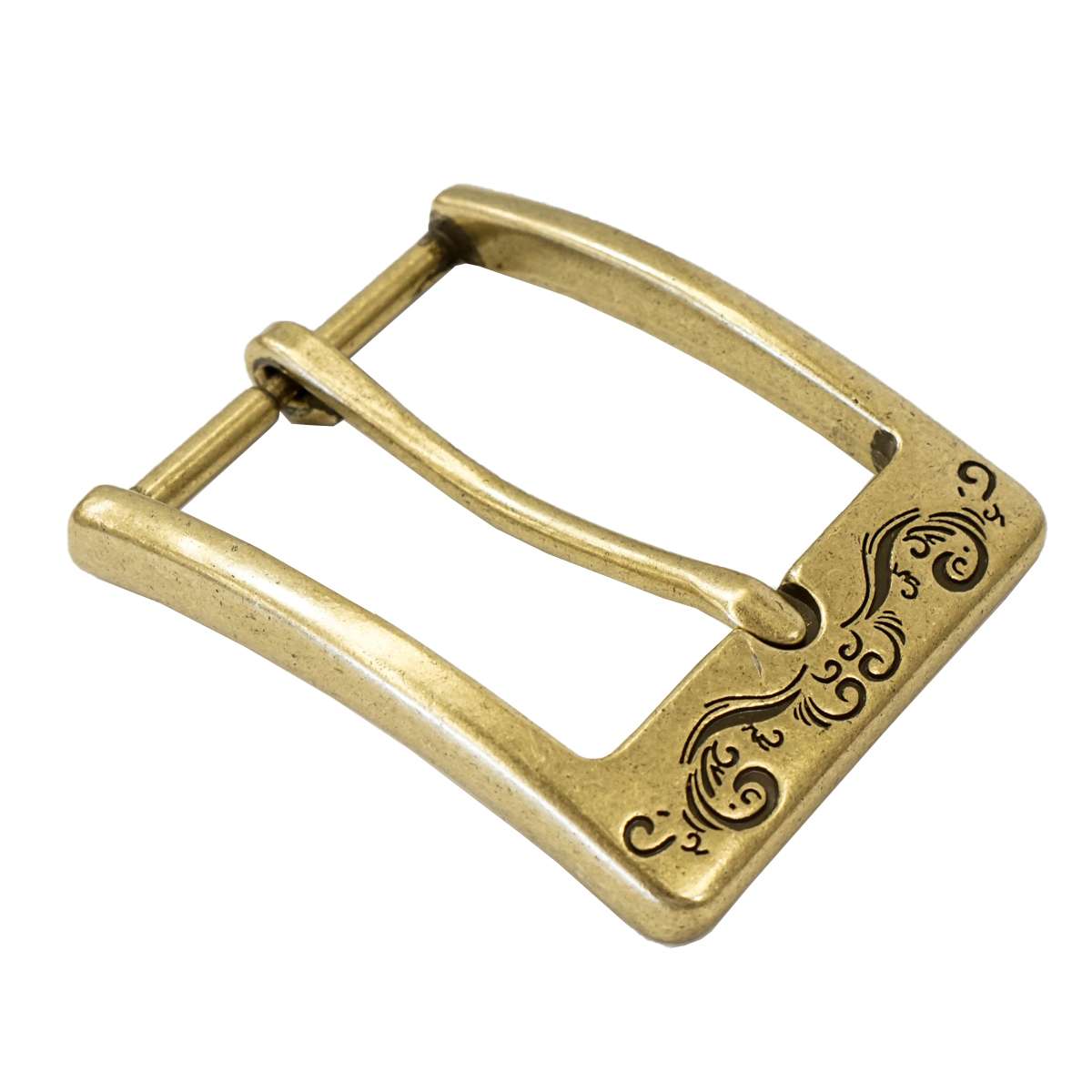 Squared Engraved Heel Bar Buckle. Antique Brass Plate, 1-1/2" (38.1mm)