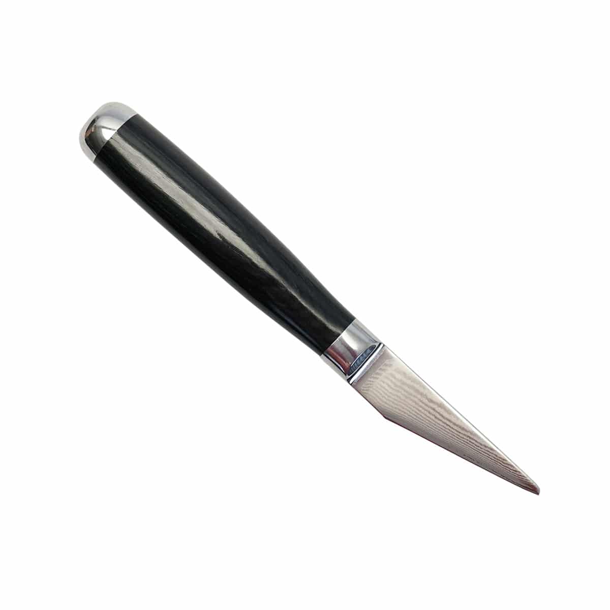 Trim knives are some of the oldest and most versatile knives used by saddle makers and leather crafters worldwide. The Damascus style blade is made from high carbon stainless steel for elite quality and durability, and cuts like butter! This is a true collector's item.