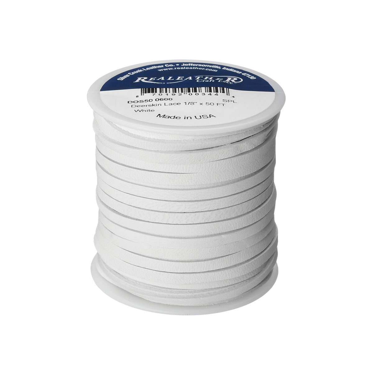 Great quality deer lace, sold in 50 ft. spools. Also, available in 2 widths. Nice color selection too.