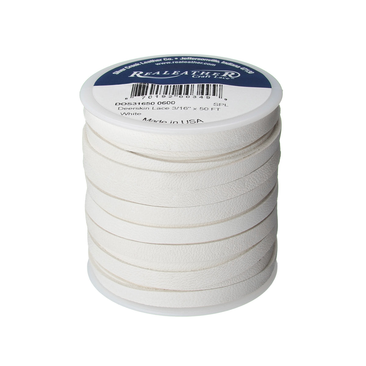 Great quality deer lace, sold in 50 ft. spools. Also, available in 2 widths. Nice color selection too.