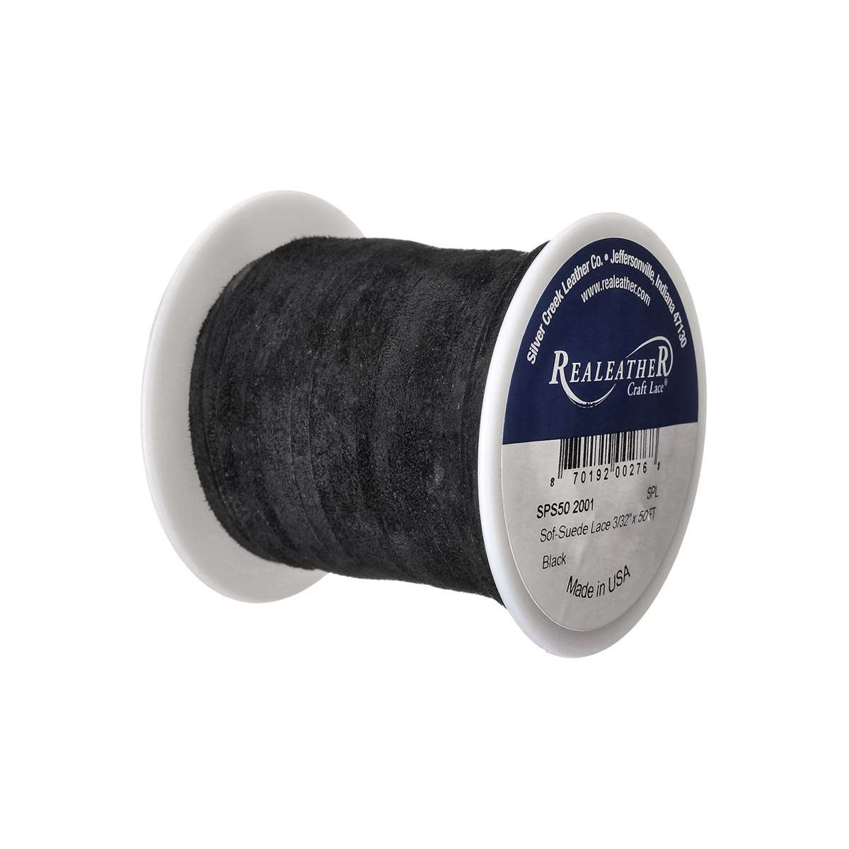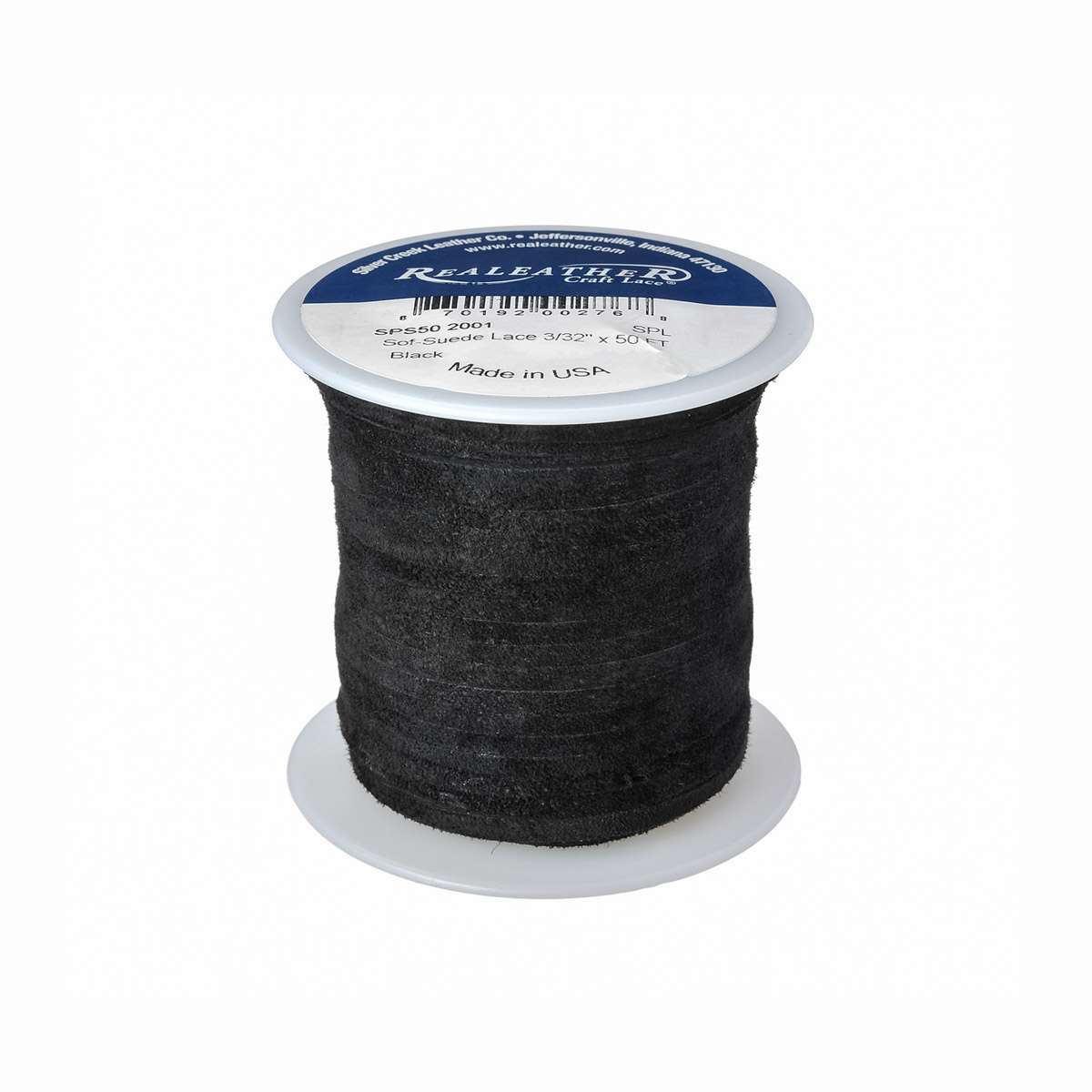 Cut from very heavy pigskin suede, it's super strong, great for jewelry use such as chokers, necklaces, Native American things & such. Great color selection, and comes in a width that is very difficult to find! 3/32" x 50 ft. Made in U.S.A.