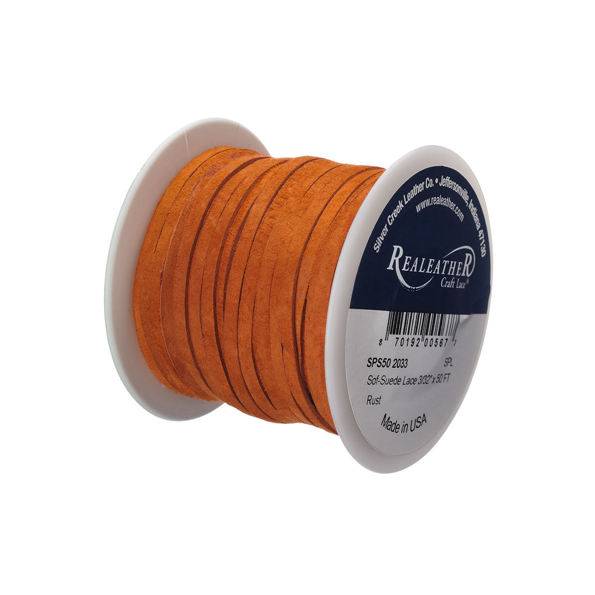 Cut from very heavy pigskin suede, it's super strong, great for jewelry use such as chokers, necklaces, Native American things & such. Great color selection, and comes in a width that is very difficult to find! 3/32" x 50 ft. Made in U.S.A.