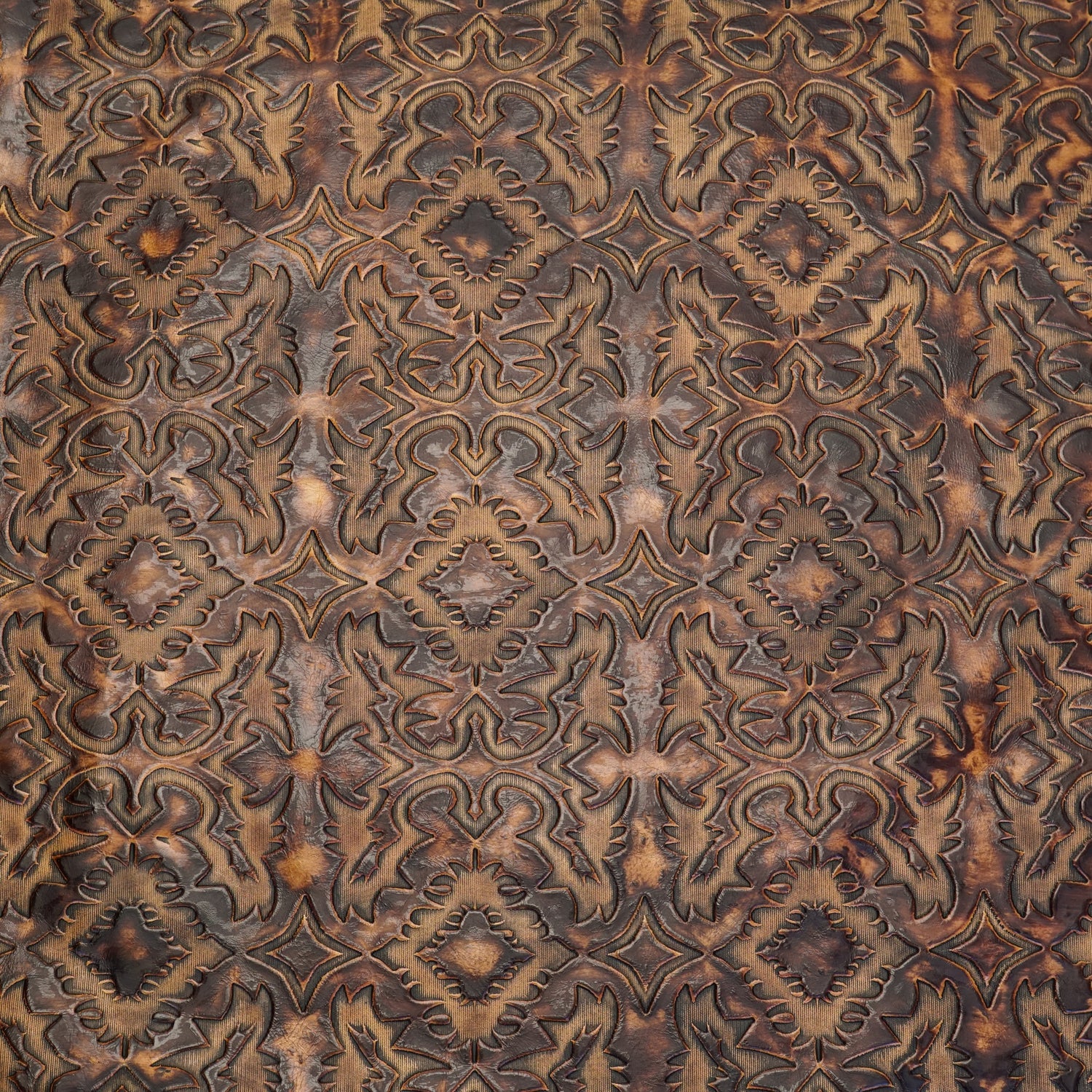 If you’re looking for a taste of the old west and want a bold and fiery pattern with a splash of modernistic style, then our Western Laurel is right up your alley! The two-tone finish really brings out the deeply embossed pattern, enhancing the highlighted areas giving this leather a little extra pop! Great for large upholstery and bag projects, like seat covers and totes! This leather comes in whole hides, which we’ll cut into sides, but order what you want because we’ll cut it for you.