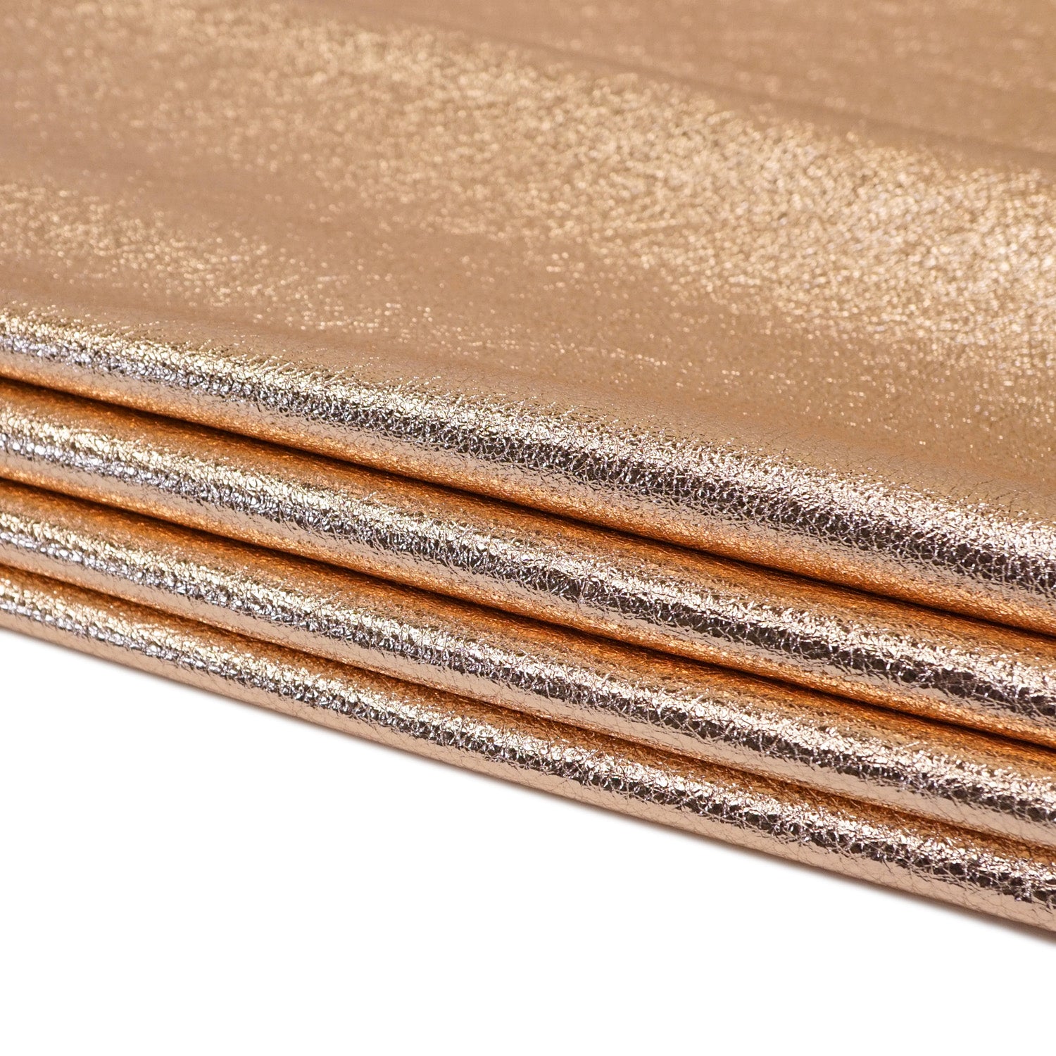 Rose Gold Milled Metallic Side. 2 - 3 oz. Sides average 22 - 28 sq ft. Sold by the sq ft. We WILL cut.