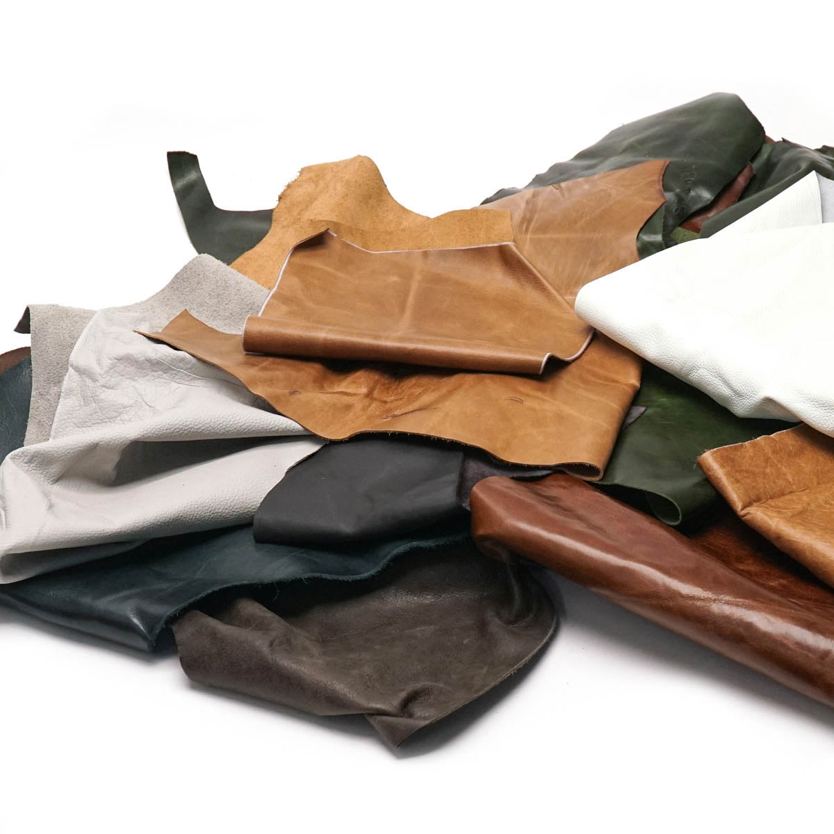 We rec’d a truckload of super upholstery remnants from one of the largest furniture manufacturers in the country. Boy, do they use nice leather! And since they’re making couches and chairs, the remnants are very large. So, we put 7-9 POUNDS of pieces in a roll, along with some nicer auto leather. You end up with around 40 sq ft of leather for somewhere around 37 cts a foot! Now, they are remnants. Some have lots of folds and some wrinkles that will test your ironing skins. Some are not wrinkled much at all. Some will need to be stretched over something firmer. Some are extremely nice, some are not. The pieces will have anywhere from about 1 sq ft of area up to pieces that have 4 or even 5 sq ft of area in them. They could be quite irregular in shape. Some can be long enough for laminated belts. Some not. This would be great for different sizes of journal covers, both rustic and non-rustic looking, small bags, ladies accessories, some mens wallets and that sort of thing. Almost all the leather is pretty upper line furniture stuff, but there might be a little automotive leather too. Colors are all over the place. Browns, tans, blues, greens, some blacks, both smooth and pebbled. Anything that might have been made into a couch or a recliner! You might get a bundle with quite a few 1-2 ft pcs along with some 2-3 ft pcs, and a few larger ones. You might get a bundle with more larger pcs and not so many small ones. Please remember, these are remnants that factory workers tossed in a 4 ft x 4 ft cardboard box and packed down. To be clear, if you’re not the creative sort, don’t buy this. If you are, you’ll probably really love it!!! If you don’t think it’s worth 19 bucks, let us know, and we’ll refund your purchase price, and you can keep the leather! So, you really don’t have much to lose……well……19 bucks I guess…. About the cost of a decent burger…. Kevin