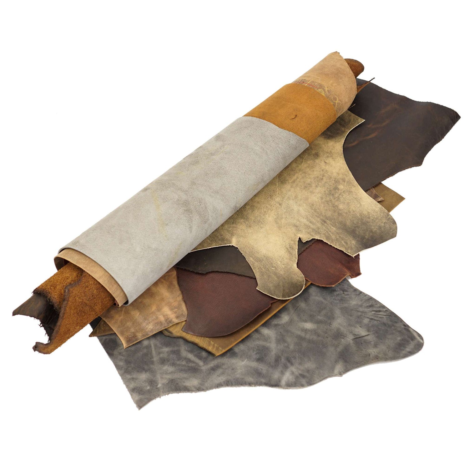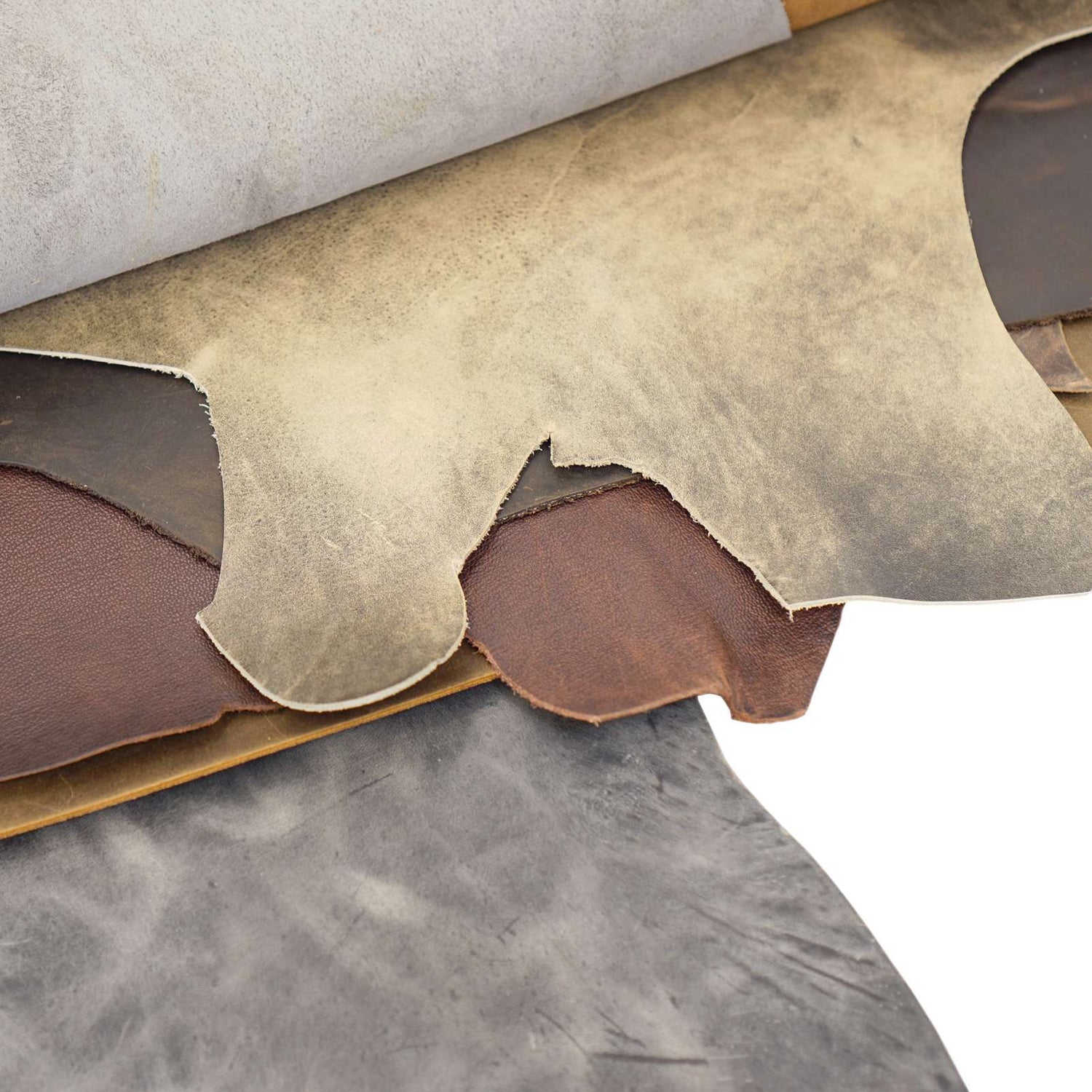 30-35 sq ft bundle of assorted oil tan leather ideal for journals. Weights range from 2.5 oz. up to 5-6 oz.