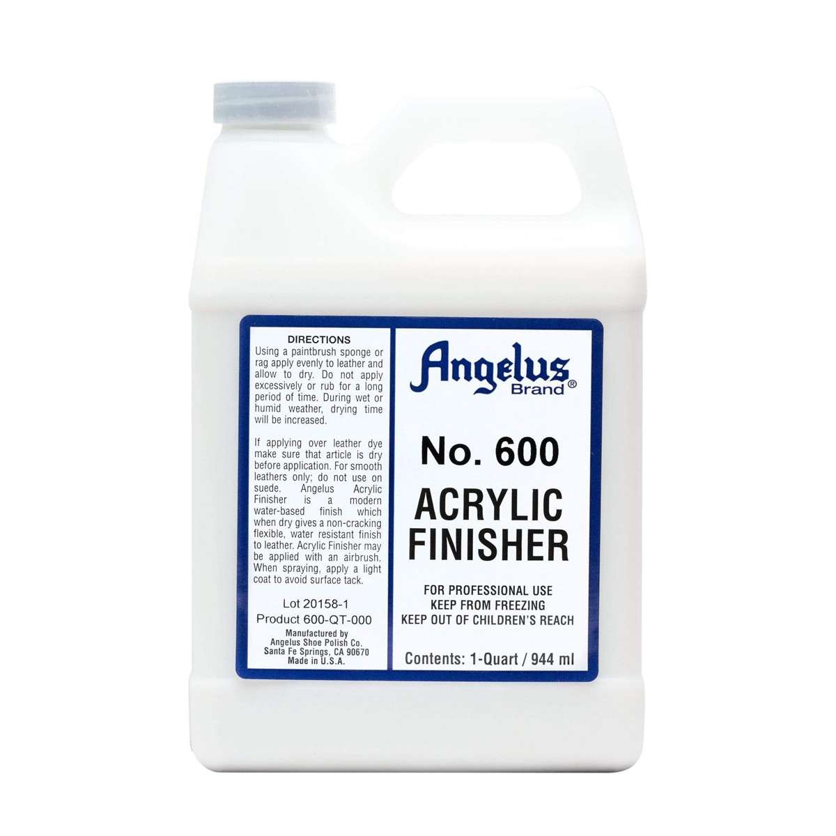 Angelus No.600 Premium Acrylic Finish is a semi gloss top finish for use on all smooth leathers. Excellent for handcrafted work or high speed production. It can be applied by almost any method you choose. No buffing needed. This water based product cleans up with soap and water and is non-flammable. ASGF