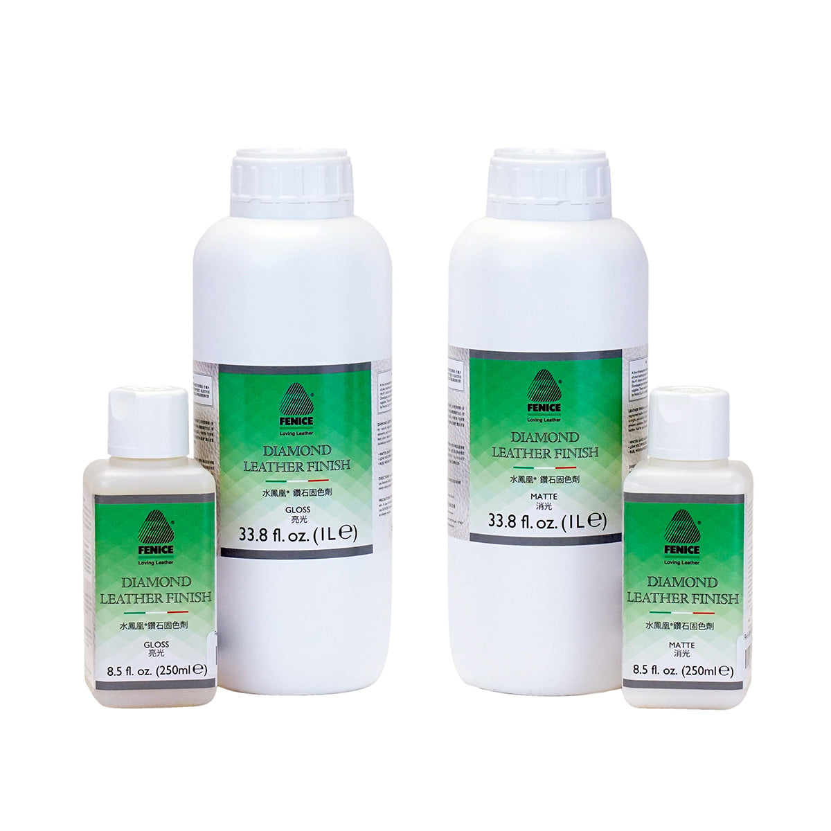 Fenice Diamond Leather Finish is a durable, water-based topcoat that is intended for use on stained or unstained veg-tanned and crust leathers.