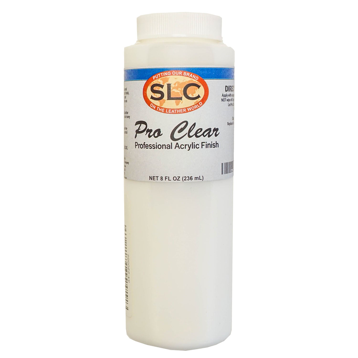 Pro Clear is a professional grade industrial acrylic finish that is used for top coating and resist type applications on natural leather. Perfect for small leather goods, boots, shoes, and a wide range of other items. If you were familiar with, and liked the old Tandy Super Sheen product, Pro Clear is very similar. Its is also environmentally safe, non-flammable and water based, with no harmful fumes.