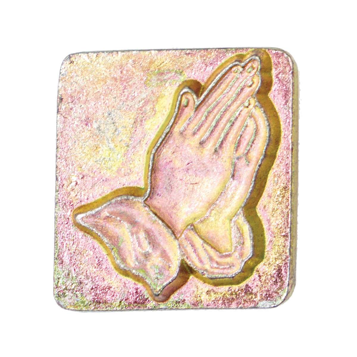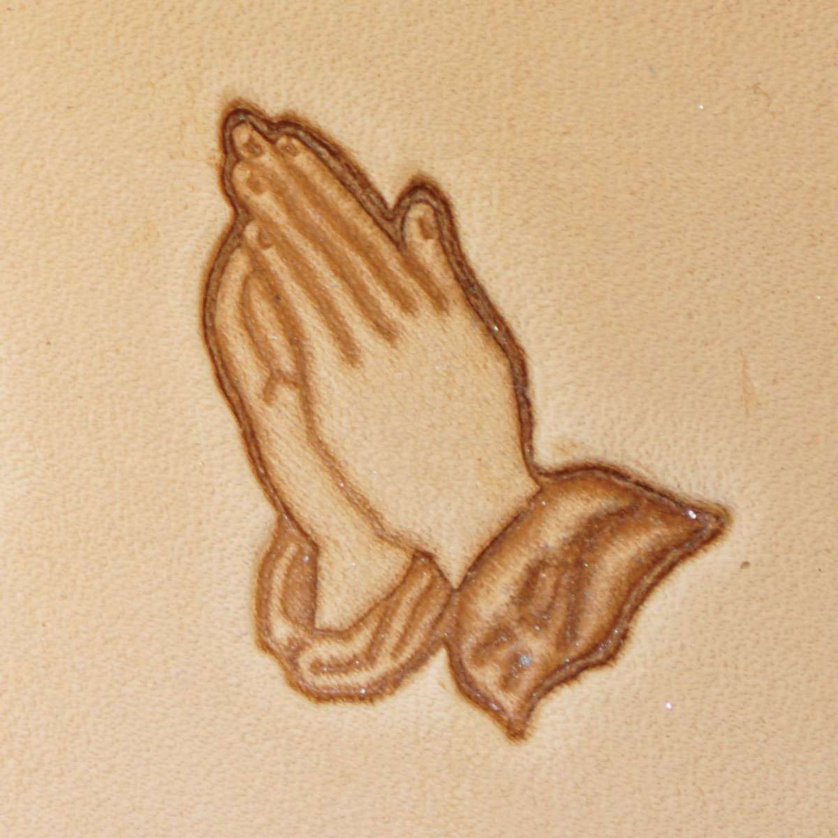 3D Stamp Tool - Praying Hands (Left). Stamp size approximately 1-3/8" x 1-1/16" (35mm x 27mm). Requires a Hefty Handle (# 011-819700) or Snap-in Handle (# 4-820001).