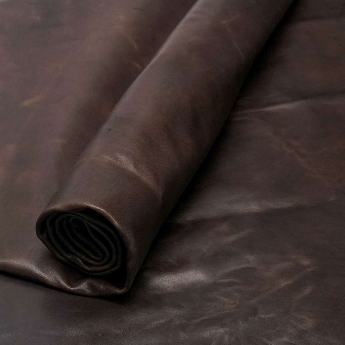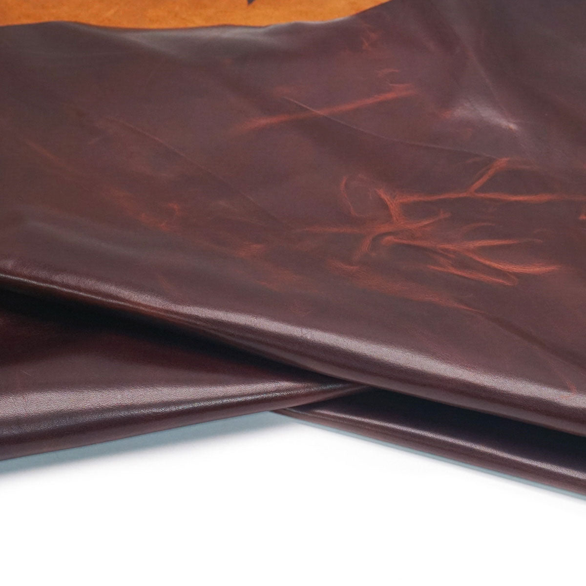 A deliciously finished, aniline dyed leather with a smooth waxy feel, and fantastic pull-up! Very high-end leather that’s versatile enough for everything from bag making to upholstery applications, and everything in between.
