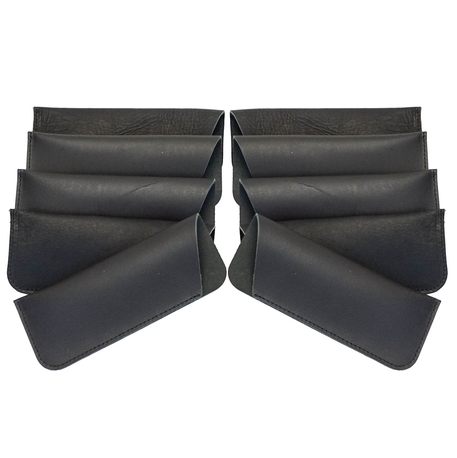These sleeves are made in house here at SLC. Glasses slide in and out easily, but don't slide out unintentionally due to the good grip of the flesh side of the leather. Perfect for hot stamping or laser engraving your logo for seller and promotional purposes.