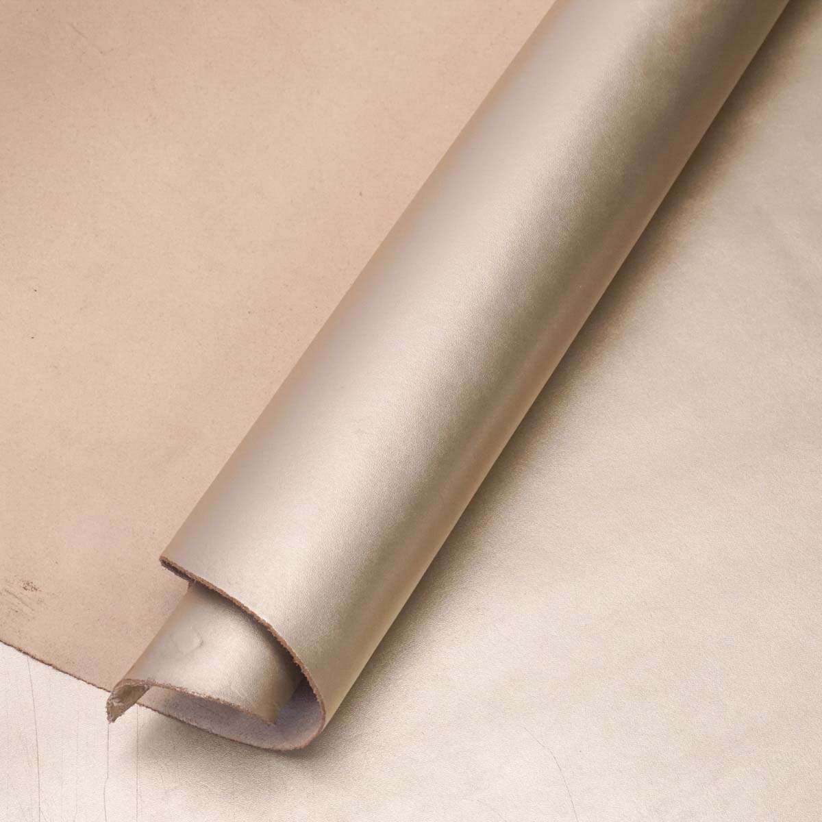 Metallic Cow Side - Platinum. 3-4 oz. (1.19 - 1.60mm). Sides average 18-24 sq ft. Sold by the sq ft. We will cut.