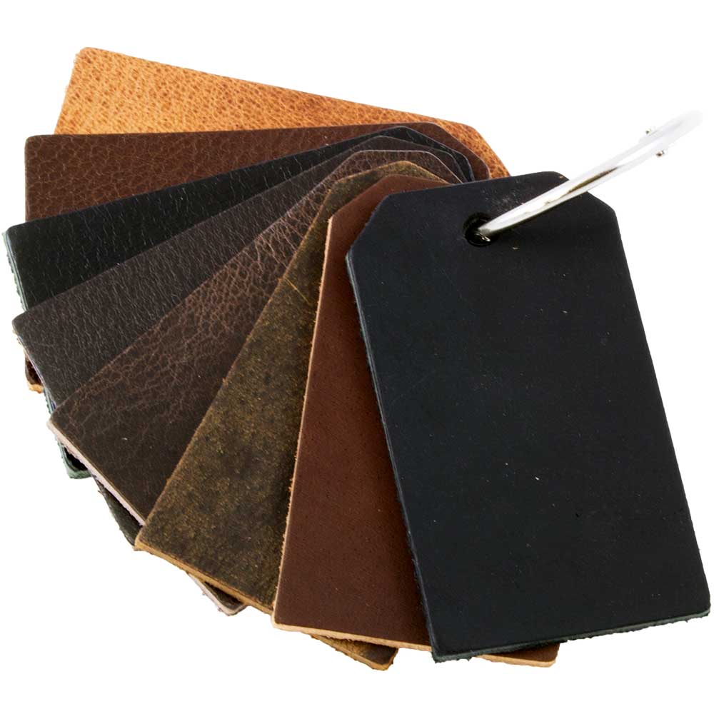Pick up one of our sample swatch rings today to satisfy any of the deep and mystifying questions you may have about leathers we carry. The swatches are roughly 2"x3", so they're plenty large enough to get an understanding of the weight and hand of the leather!