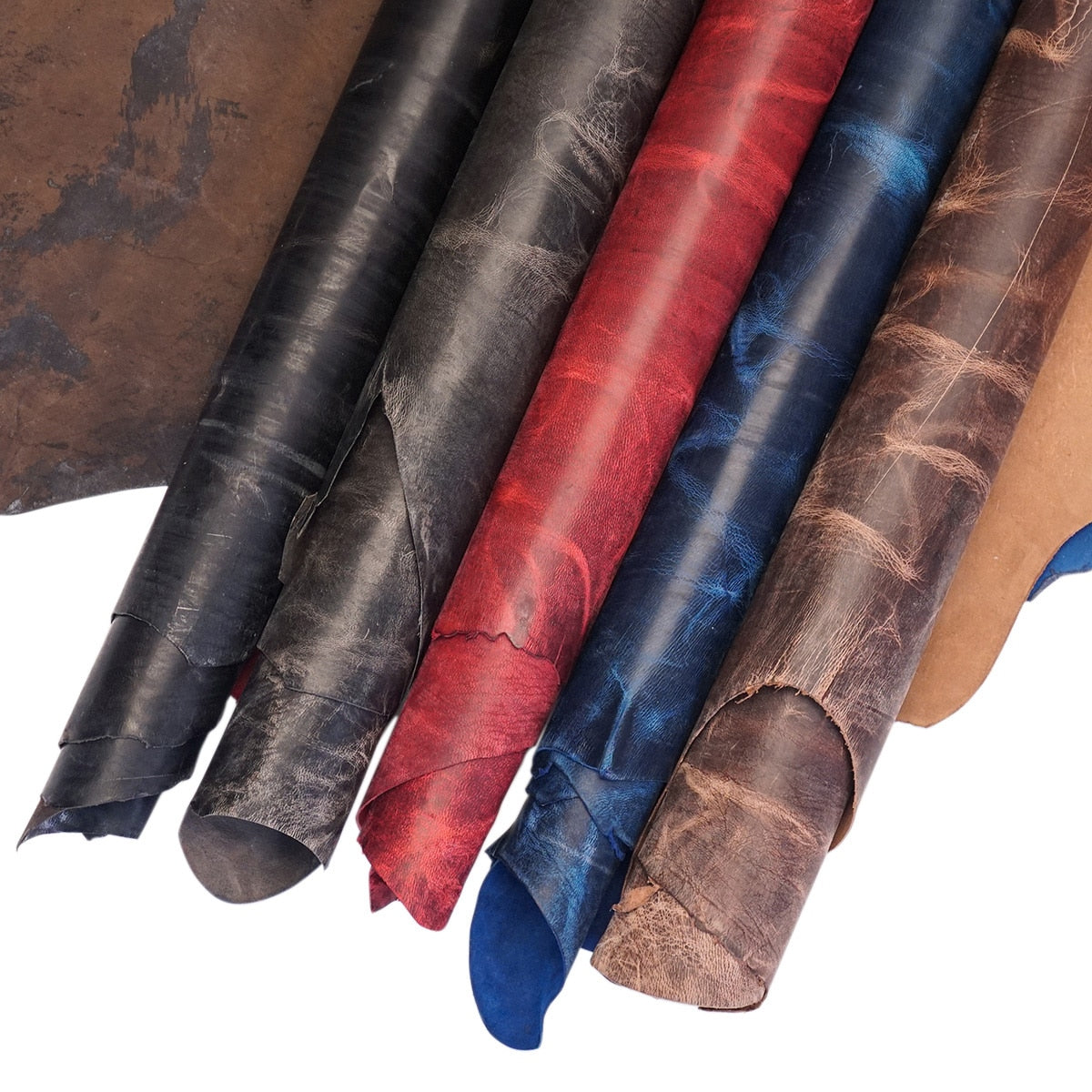 These are 100% aniline dyed, top grade, vegetable tanned African Goat skins, stuffed with loads of natural waxes and oils in the finishing process to give this leather that distinct and highly desirable pull-up and vintage attributes. This gorgeous leather can be burnished, polished, and distressed to create various looks and styles to suit whatever your needs happen to be! The unique finishing process showcases the natural grain and character of the leather and will add a classy richness to anything you create from it.