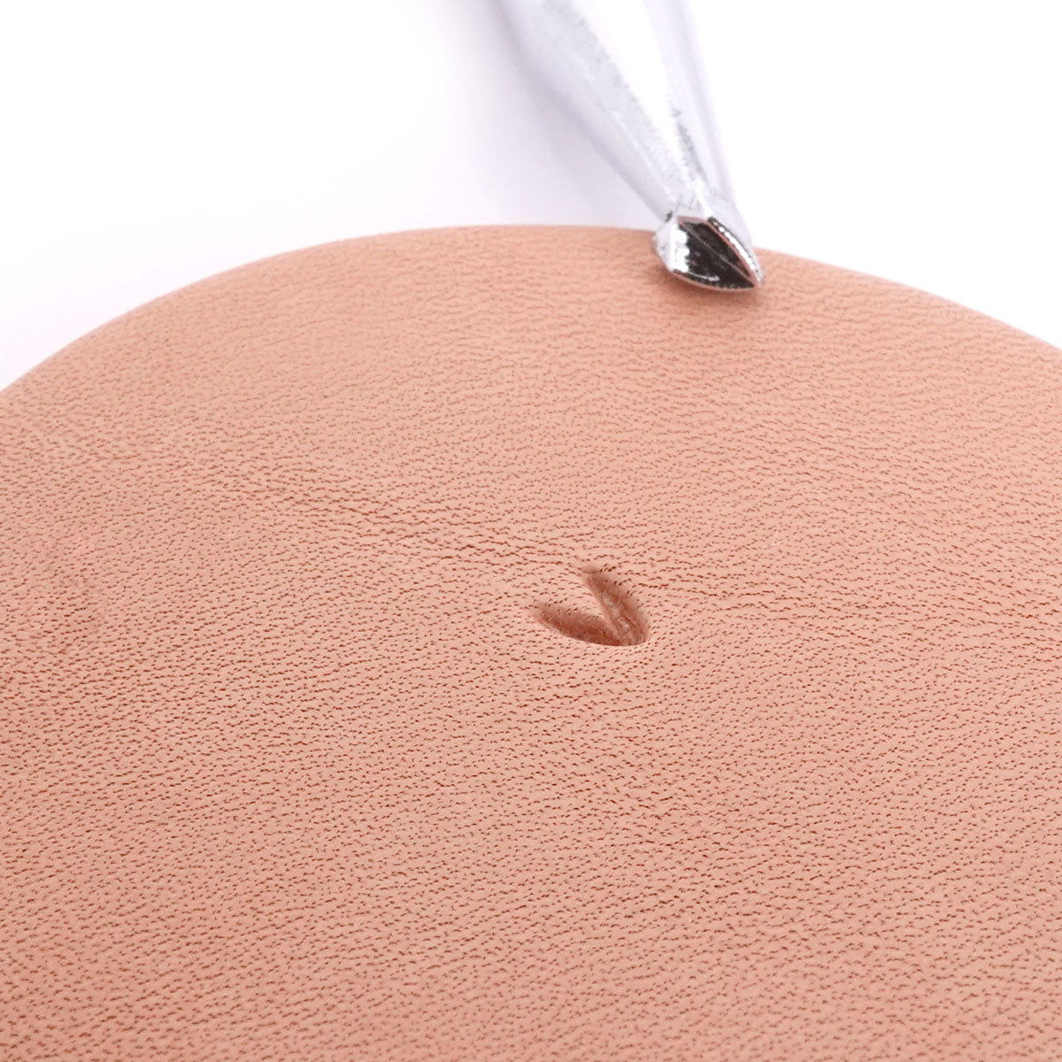 One of the common uses of the mulefoot is in conjunction with the "stop" tool in floral carving. The mulefoot enhances the flow of the design. Other uses of this tool include making feathers on your bird carvings, making fish scales and border designs.