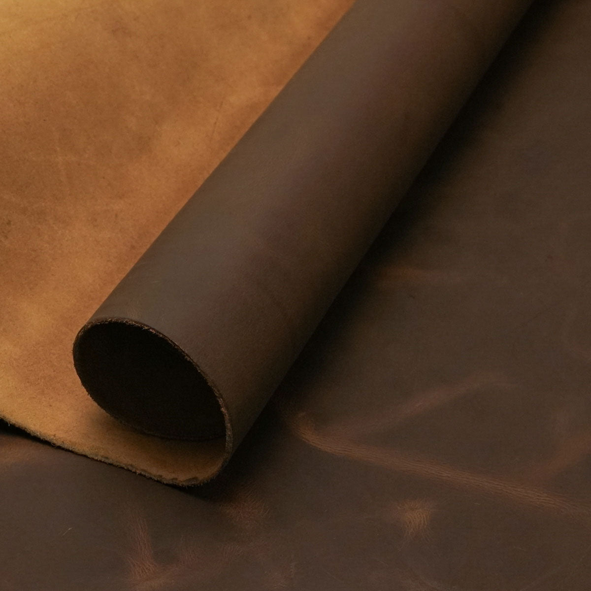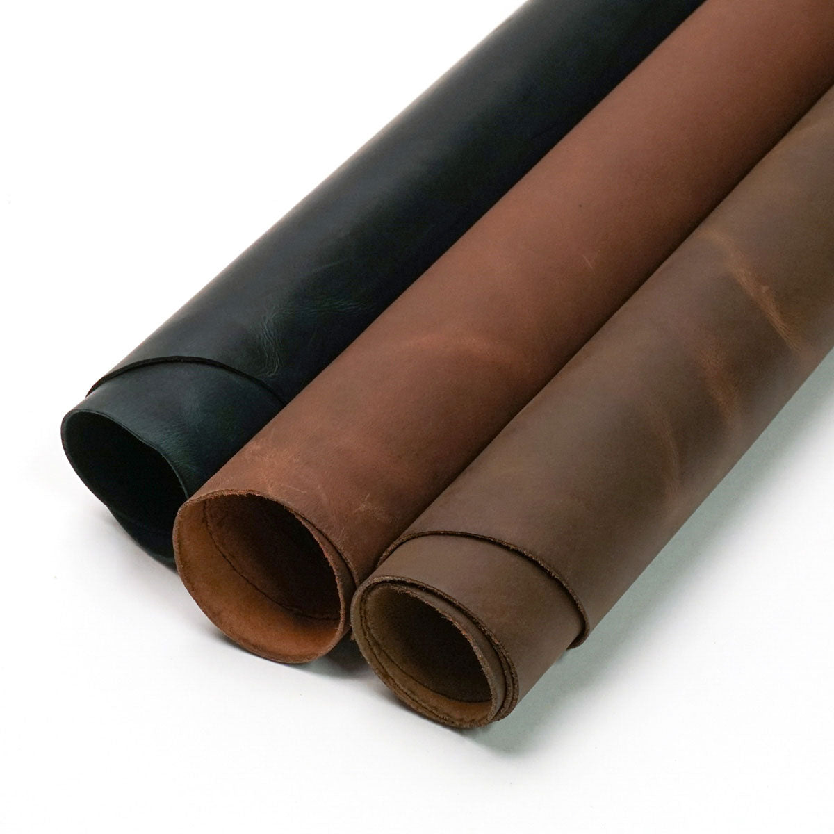Sia Dry-Hand Buffalo is a 4.5-5oz buffalo leather produced by the Sheikh of Sialkot tannery and finished with a Crazy Horse pull-up. It features a firm temper and a dry, matte surface that offers controlled handling and clean definition. The average size range is from 11-15 square feet with some variance.This leather is ideal for bags, small goods, and structured leatherwork where shape retention and a natural appearance are important. It is not recommended for 1-ply heavy belt applications; however, it performs well for matte-finish dress belts or as a 2-ply when combined with a thicker firm belt lining, creating a durable, work-ready belt with a refined look.