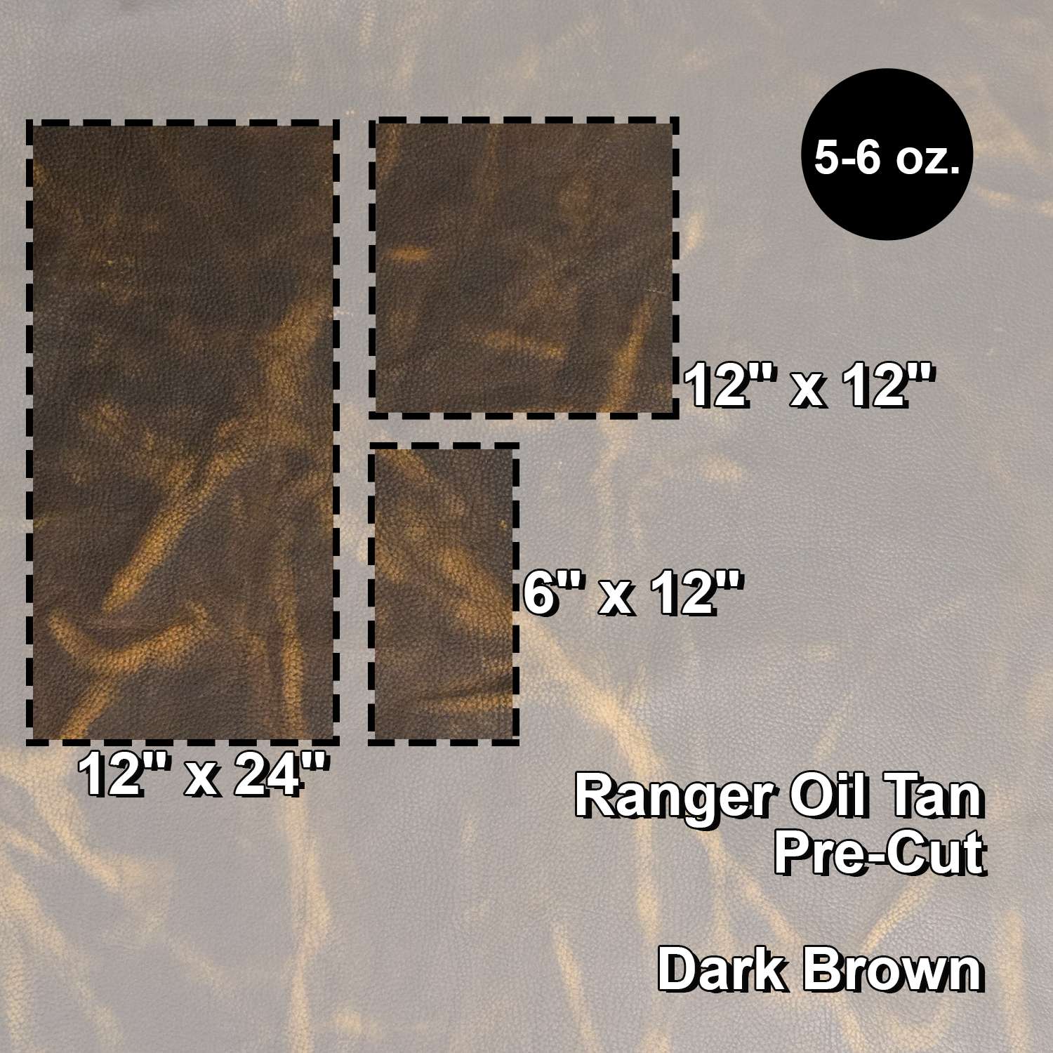 Ranger Oil Tan Pre-Cut - Dark Brown - Dark Brown, 5 - 6oz. Available in 6" x 12", 12" x 12" and 12" x 24". Cut from # 579-1400