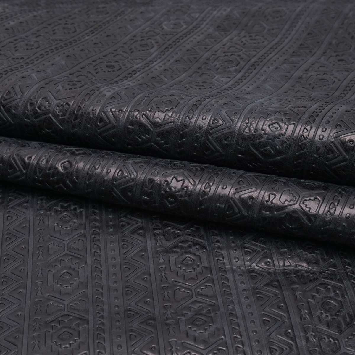 Authentic Lightning embossed leather showcases shapes and designs influenced by tribal symbols. This top grain leather is fully aniline dyed, finished with waxes and oils, and hand-tipped with contrasting color for a rich, two-toned look. Available in four rich colors. This leather is perfect for handbags and clutches, laminated wallets, minimalist wallets, and other personal leather goods. It’s also suitable for upholstery and home décor applications, as well as footwear!